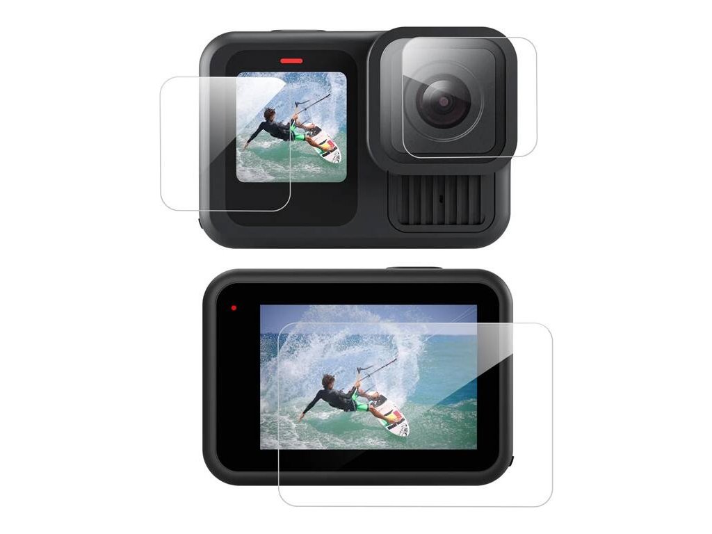 Sada obsahuje tři tvrzená skla pro GoPro Hero 13 - pro přední displej, zadní displej a objektiv. Díky přesnému uchycení a tvrdosti 9H účinně chrání před poškrábáním, nečistotami a drobnými nárazy a zajišťují maximální bezpečnost zařízení za všech podmínek. Příslušenství navíc nijak neovlivňuje komfort kamery ani kvalitu obrazu.