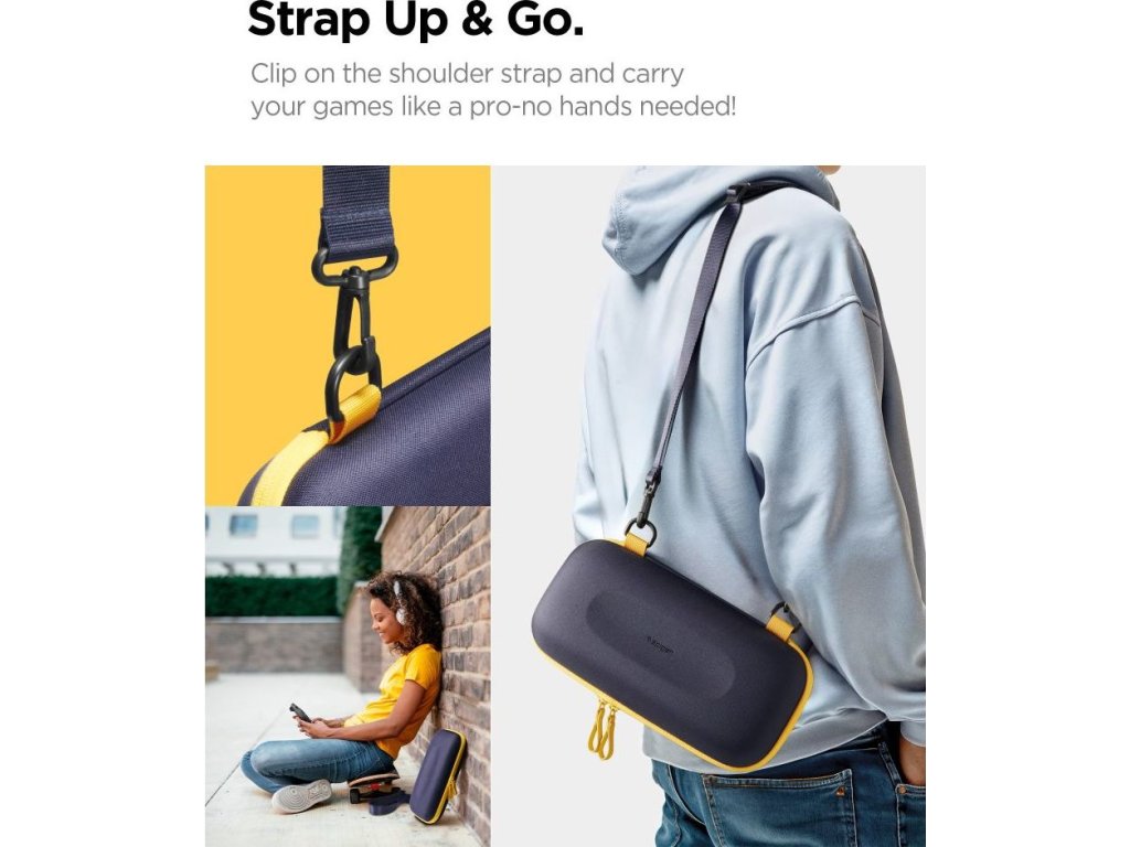 Ochranné pouzdro Spigen Nano Pop Pro Pouch je stylové a funkční, které kombinuje moderní design s praktičností. Jeho dvoubarevný, kontrastní vzhled dodává pouzdru charakter, zatímco zaoblený tvar poskytuje estetický vzhled a zároveň solidní ochranu vaší konzole a příslušenství.