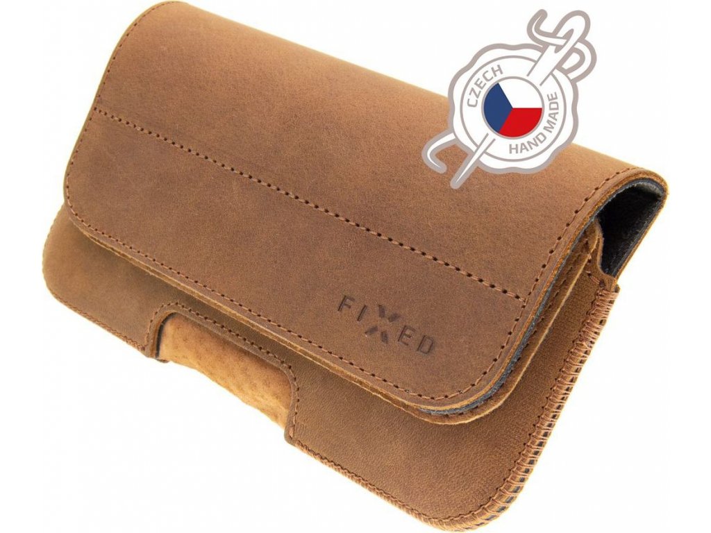 Horizontální kožené pouzdro FIXED Posh se zavíráním, velikost 4XL+, hnědé