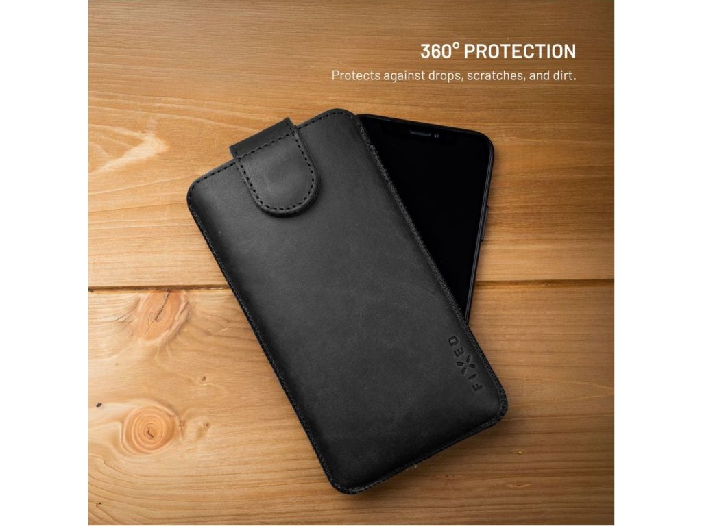 Kožené pouzdro FIXED Posh, velikost 6XL, černé