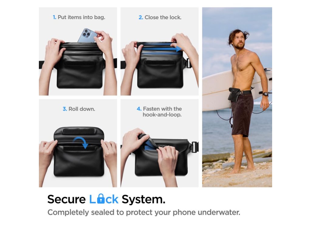 SPIGEN A621 UNIVERSAL WATERPROOF CASE & WAIST BAG BLACK