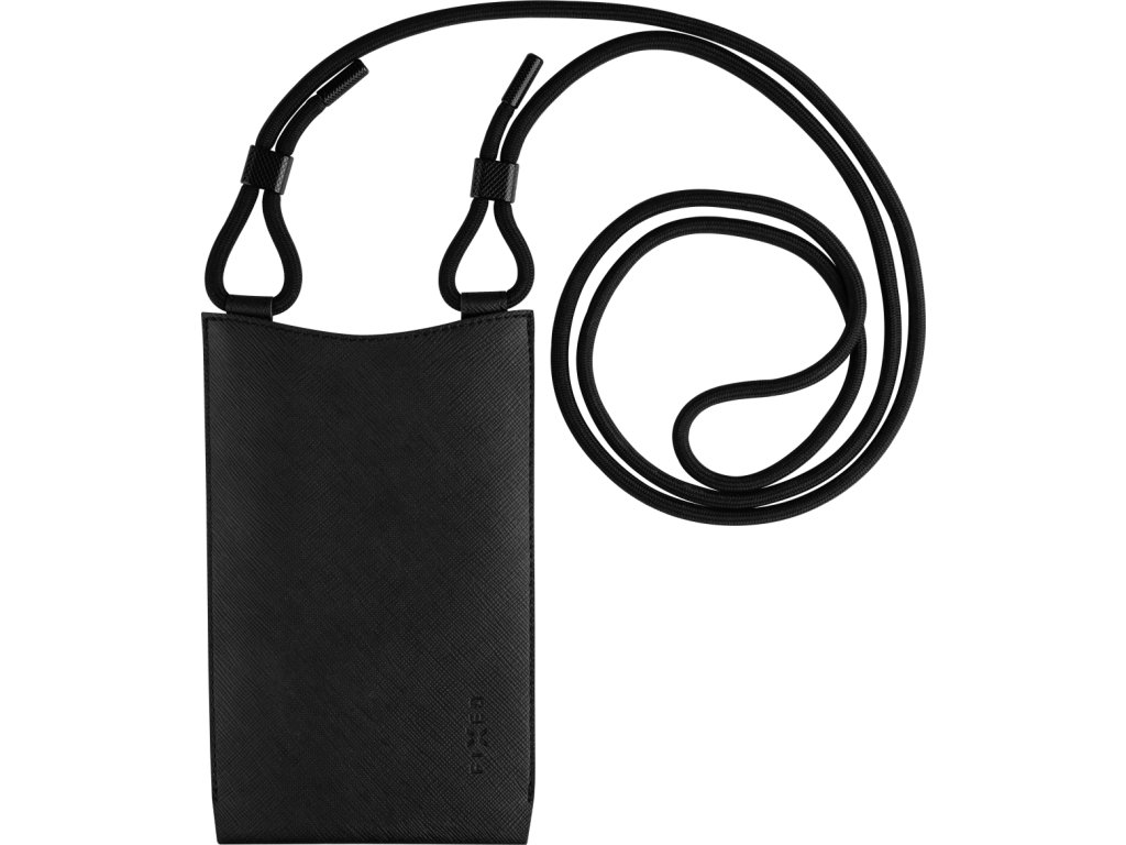 Taštička přes rameno s kapsou FIXED Verona s černou šňůrkou pro mobilní telefony do 7", černá