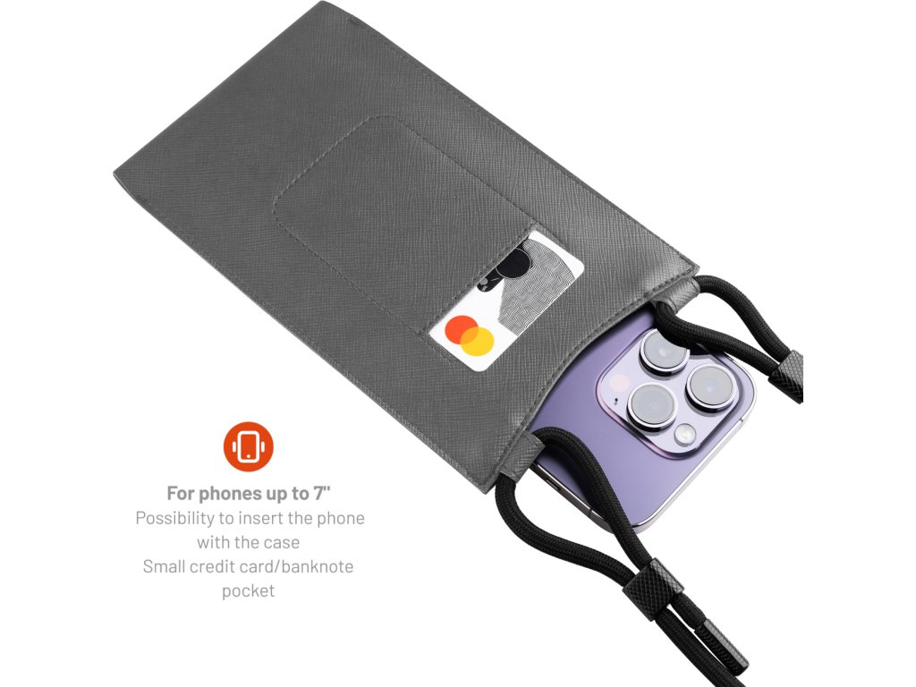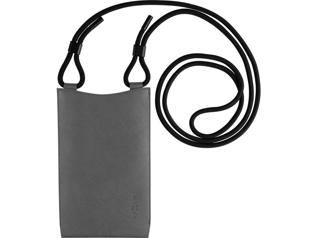 Taštička přes rameno s kapsou FIXED Verona s černou šňůrkou pro mobilní telefony do 7", šedá