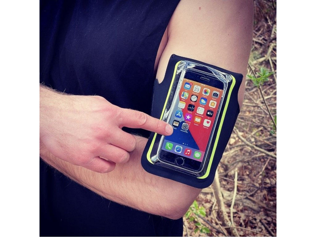 Je vyroben z materiálů odolných proti vlhkosti a potu a díky speciálnímu ochrannému povlaku vám umožní používat smartphone při běhu nebo jízdě na kole.