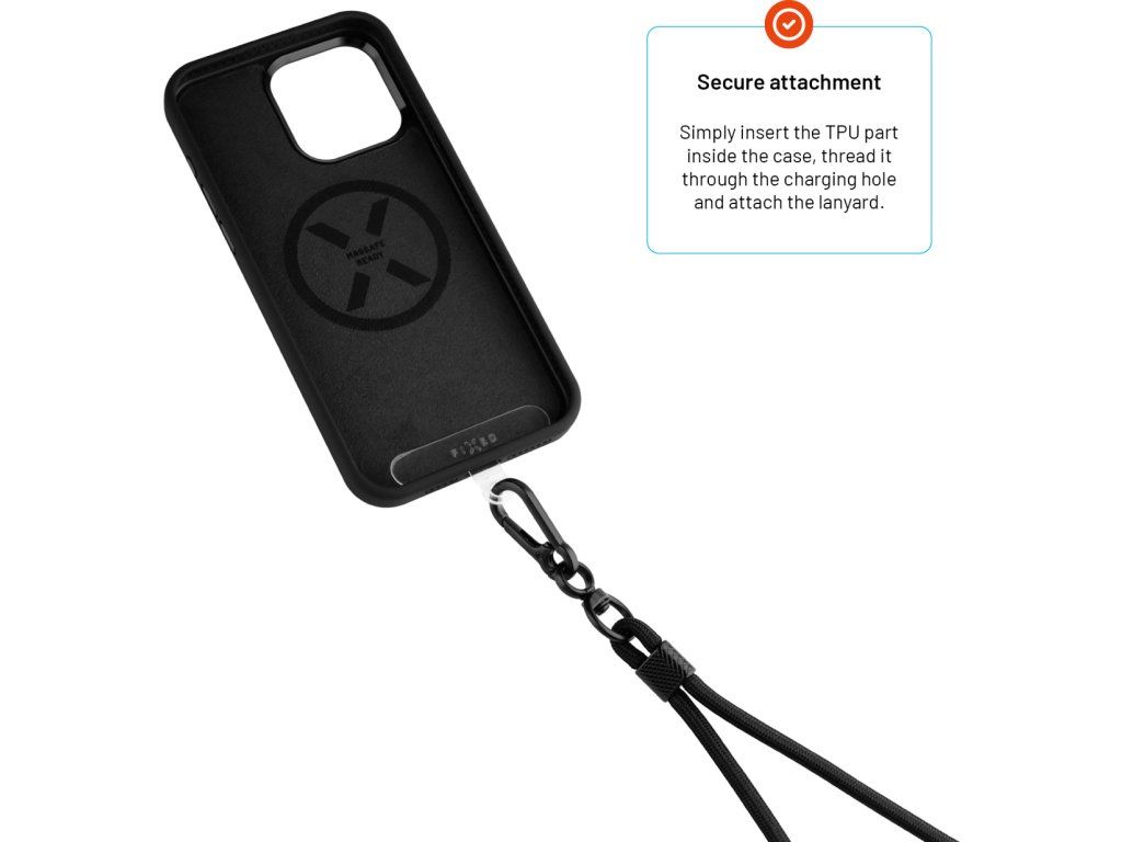 Univerzální šňůrka FIXED NeckUni pro pohodlné nošení telefonu na krku, přes rameno či crossbody. Součástí šňůrky je TPU destička, kterou vložíte mezi telefon a zadní kryt, skrz výřez pro nabíjení provléknete poutko destičky a pomocí karabiny připnete samotnou šňůrku. Takto je telefon ke šňůrce bezpečně zafixovaný. Pomocí kovových komponentů snadno upravíte délku šňůrky pro variabilní nošení. Nemusíte nosit telefon po kapsách nebo schovaný v tašce, s FIXED NeckUni mějte svůj telefon po ruce, kdykoliv ho budete potřebovat.