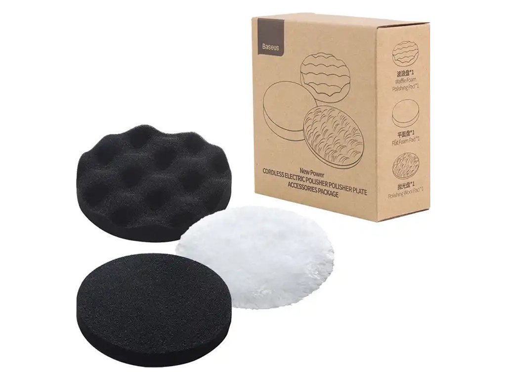 Sada obsahuje 3 podložky, které vám usnadní leštění vozidel pomocí leštičky Baseus. Pěnový vaflový polštářek je ideální pro začátky a umožňuje přesné nanášení vosku. Plochá pěnová podložka vám umožní rovnoměrné rozetření vosku. Vlněný polštářek je ideální pro leštění voskovaných automobilů.