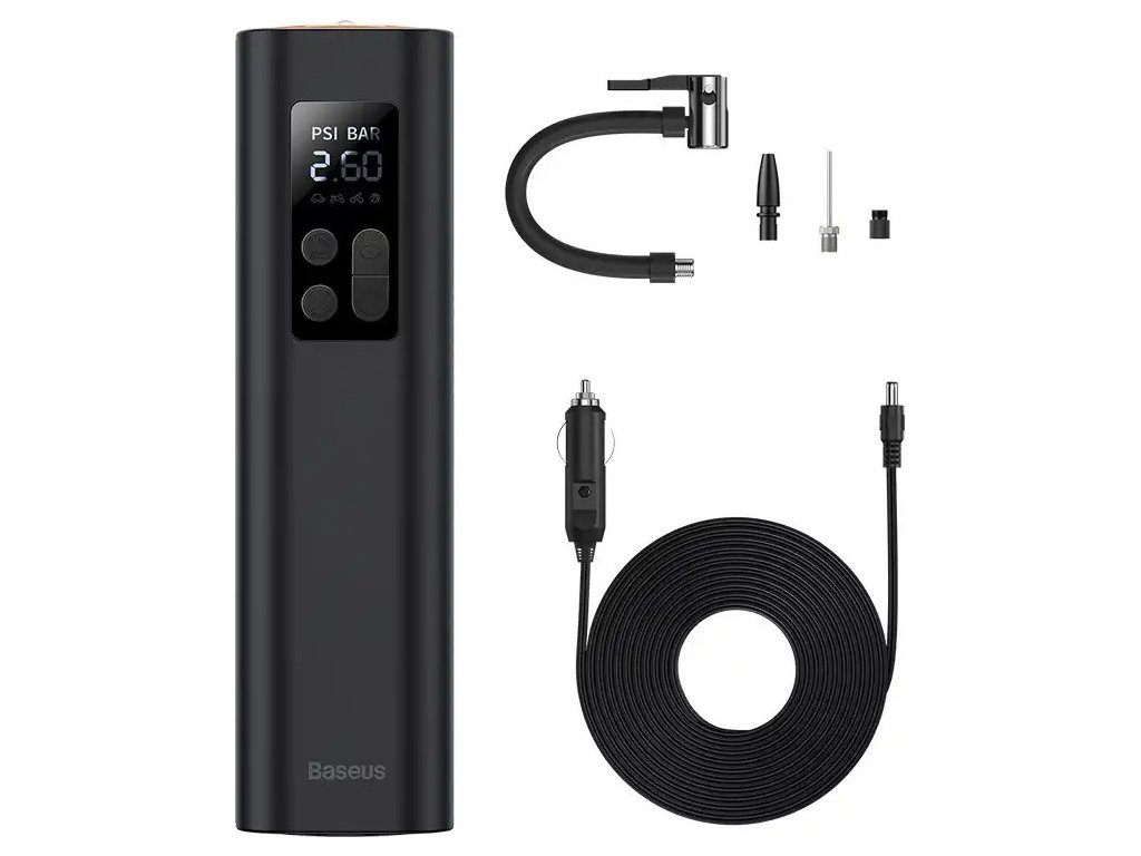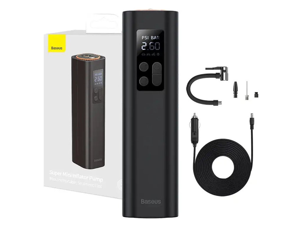 Máte cestou do práce nedostatek vzduchu v pneumatikách? Mini kompresor Baseus vám v takových situacích spolehlivě pomůže. S jeho pomocí okamžitě doplníte vzduch do pneumatik nebo míč. Díky kompaktnímu provedení jej snadno uskladníte. Lze jej napájet z jakékoli 12V zásuvky automobilu a LED displej poskytuje pohodlný přístup k nejdůležitějším informacím.