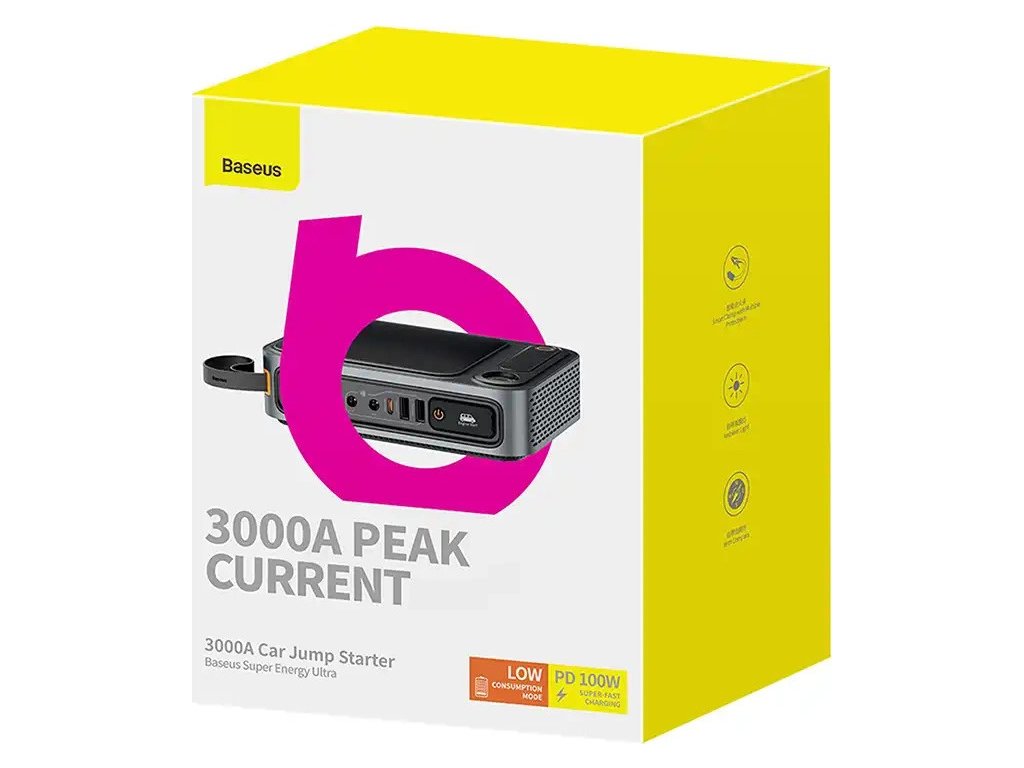 Buďte pripravení na nečakané udalosti s Baseus Super Energy Ultra! Špičkový prúd 3000 A vám umožní naštartovať auto v priebehu niekoľkých okamihov bez ohľadu na poveternostné podmienky. Je kompatibilný s benzínovými aj naftovými vozidlami. Zariadenie využijete aj ako powerbanku, s ktorou môžete nabíjať až 3 zariadenia súčasne. Je vybavený svietidlom s 3 režimami svietenia a malým kompasom. Rad bezpečnostných prvkov zaručuje vysokú úroveň zabezpečenia a vďaka súladu s leteckou legislatívou si ju môžete úspešne vziať so sebou do lietadla.
