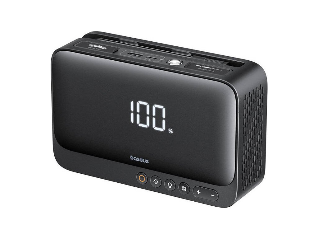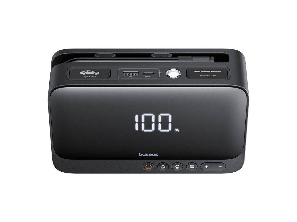 Potřebujete rychle nafouknout pneumatiku na kraji silnice? Žádný problém – Baseus Super Energy bude dobře fungovat i jako kompresor. Nabízí tlak až 150 psi, takže jej můžete úspěšně použít v různých scénářích. S jeho pomocí nafouknete nejen pneumatiku auta, ale například i pneumatiku na kolo nebo míč. Zařízení má také vestavěné přihrádky, které umožňují pohodlné uložení potřebných trysek a usnadňují udržování pořádku.
