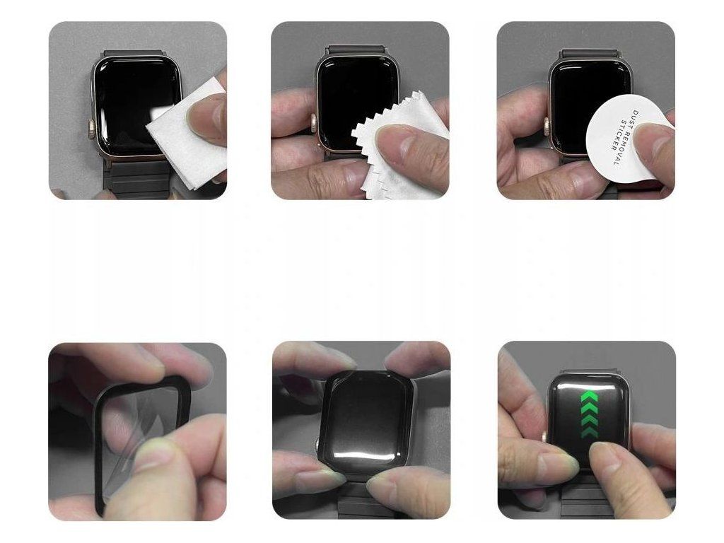 1. Důkladně očistěte obrazovku hodinek. K odstranění nečistot a otisků prstů použijte vlhký hadřík. Poté obrazovku otřete suchým, měkkým hadříkem, abyste zcela odstranili vlhkost. Nakonec použijte protiprachové samolepky k odstranění veškerých prachových částic.