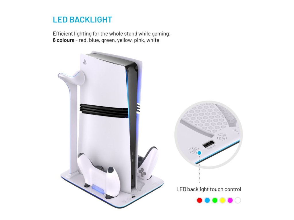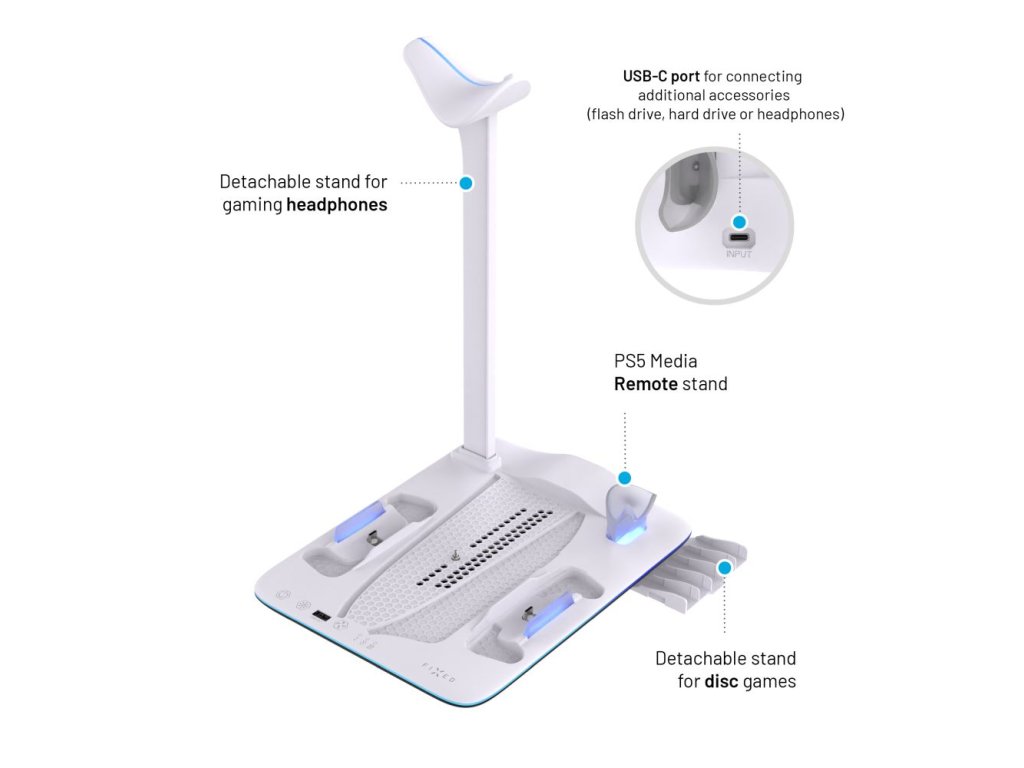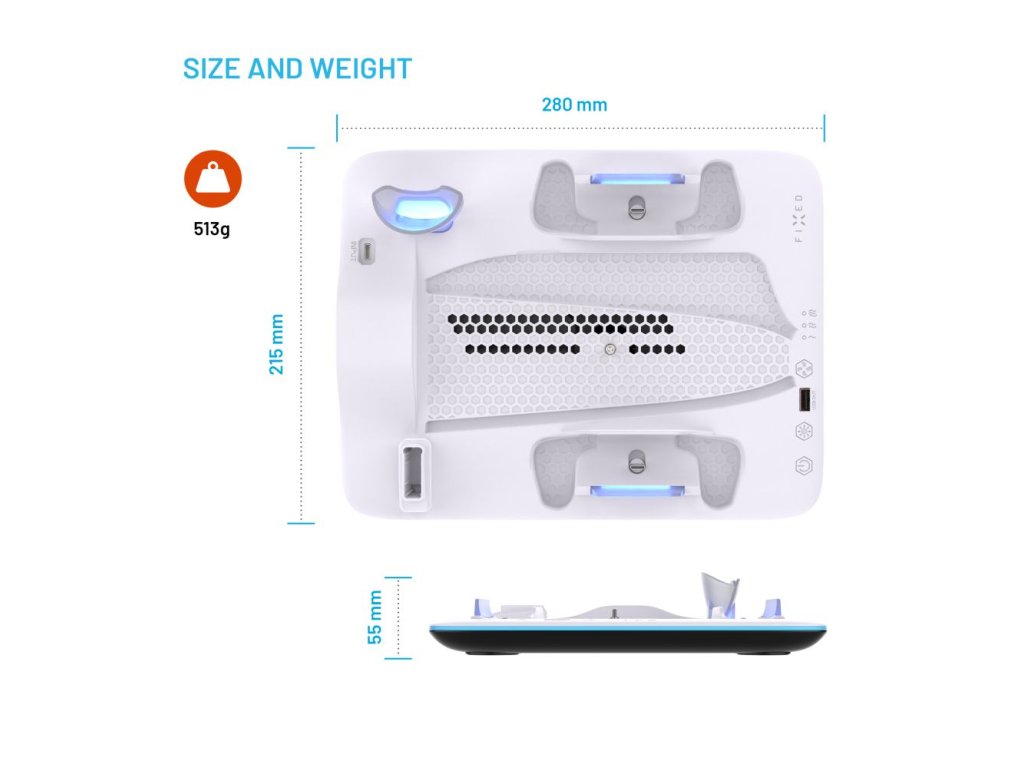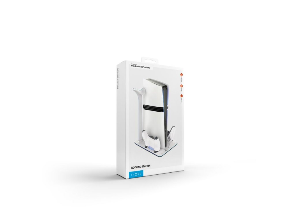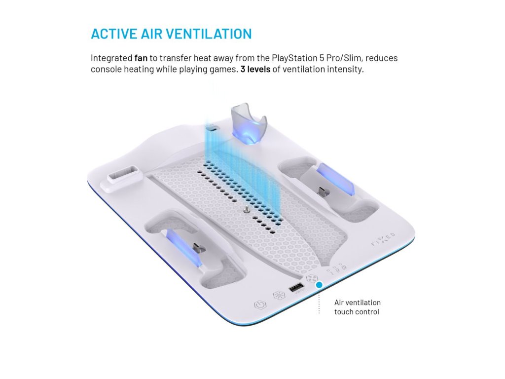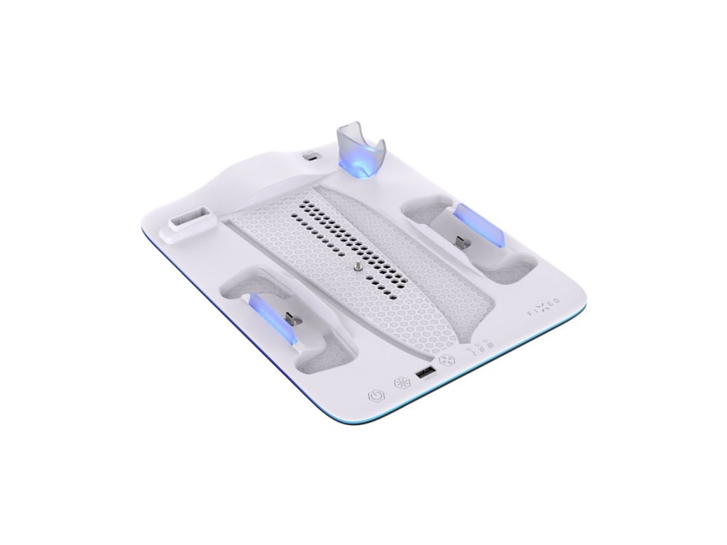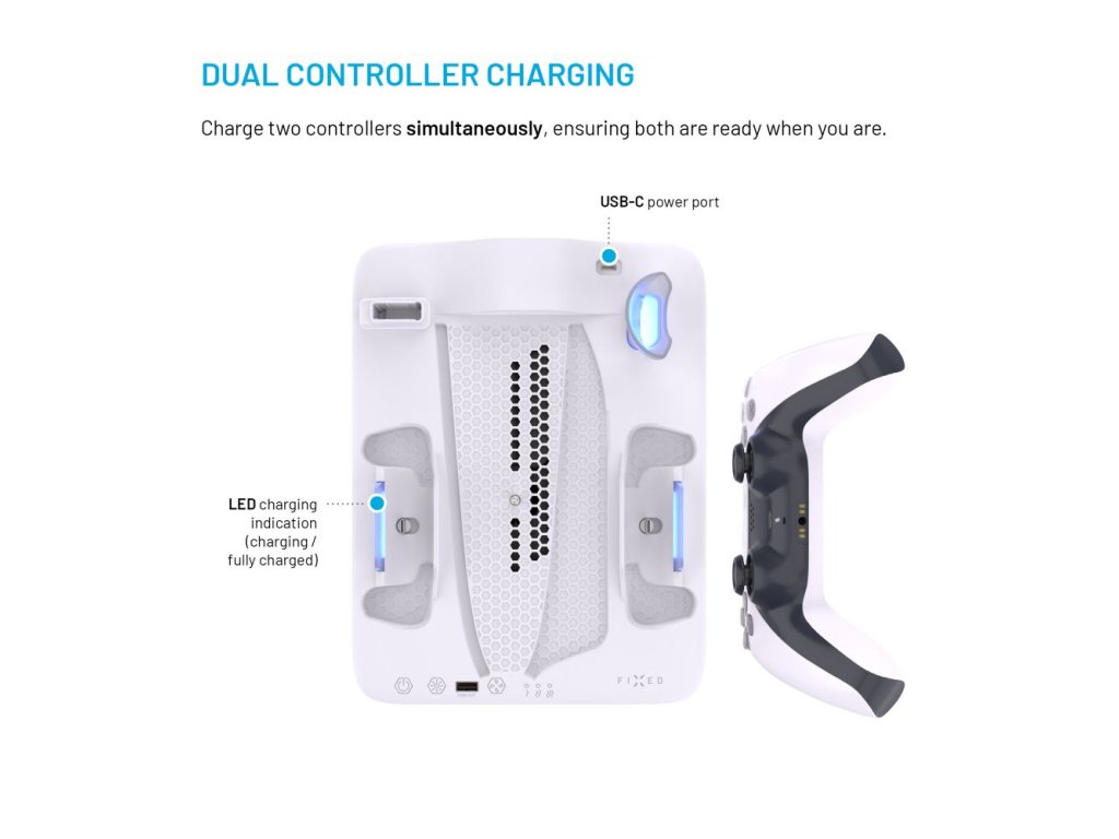 Dokovací stanice FIXED pro PlayStation 5 (Pro/Slim) s větráky a nabíjením pro 2xDualSense, černo-bílá