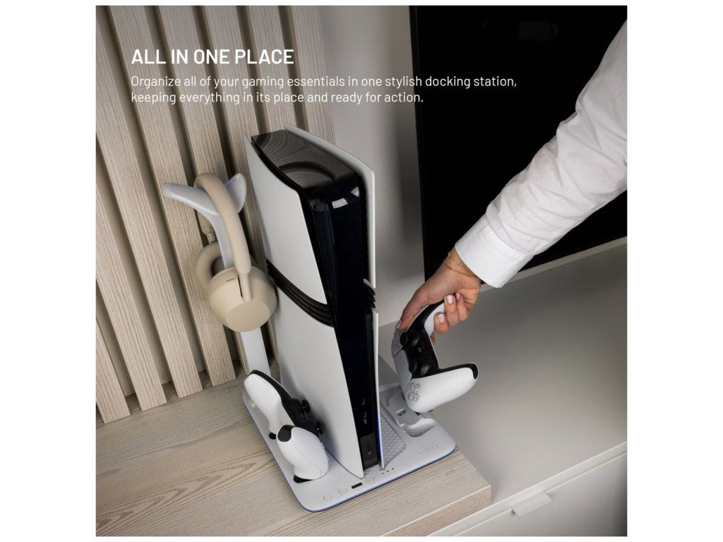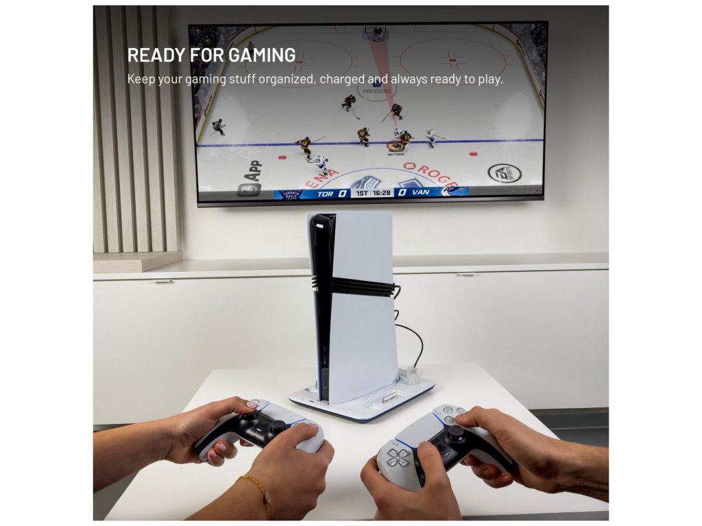 Dokovací stanice FIXED v jedinečném designu je praktickým doplňkem pro vaši konzoli PlayStation 5 Pro a PlayStation 5 Slim, a to v digitální i diskové verzi.