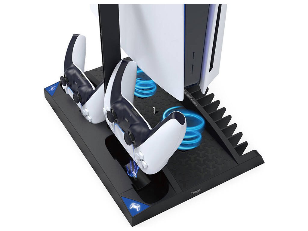Postarejte se o pořádek na svém herním stojanu. Pomůže vám multifunkční konzolový stojan iPega PG-P5013B PS5, který je vybaven dvěma chladicími ventilátory, dvěma nabíjecími stanicemi pro podložky, stojánkem na sluchátka a také prostorem pro uložení her. Je vybaven portem USB 2.0 a umožňuje nabíjení sluchátek a dalšího příslušenství, zatímco přiložený montážní šroub zajišťuje stabilitu stojanu.