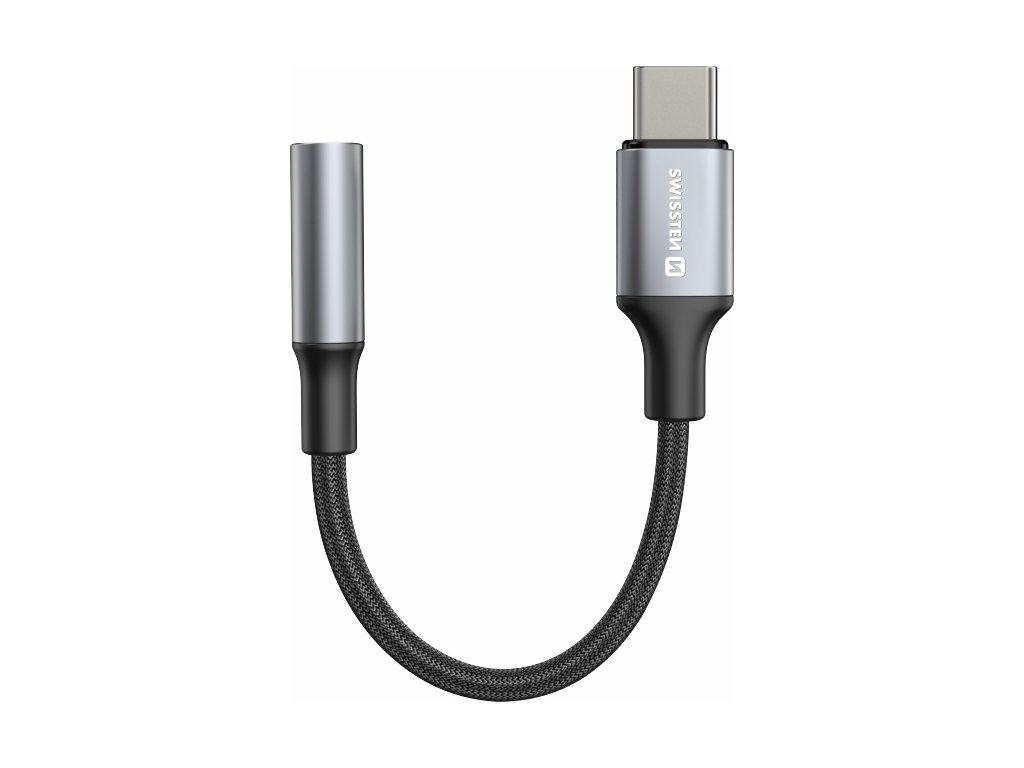 AUDIO ADAPTÉR SWISSTEN TEXTILE USB-C (samec) / 3,5mm AUX 0,15 M ČERNÝ
