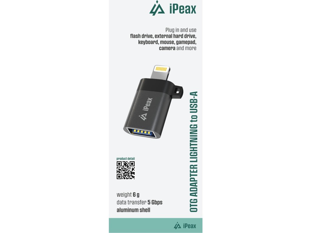Kompaktní iPEAX adaptér USB-A (samice) / Lightning s hliníkovým tělem, přenáší data rychlostí až 5 Gb/s díky USB 3.0. Ideální pro připojení USB příslušenství k iPhonu nebo iPadu. Zabaleno v iPEAX balení.