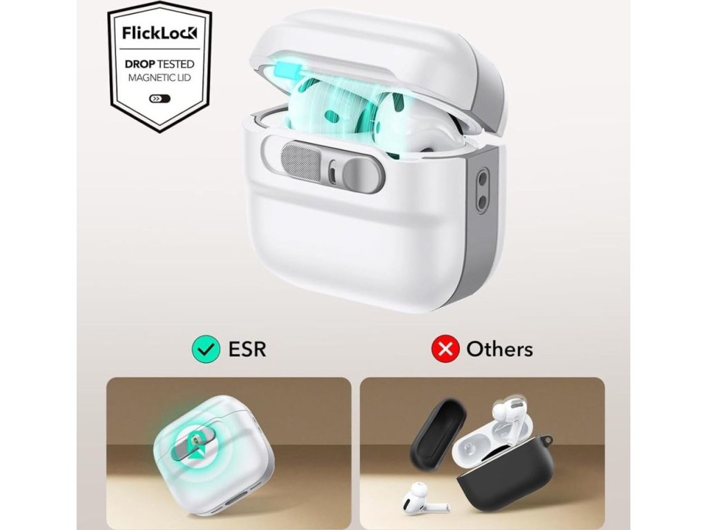 Chraňte svá sluchátka AirPods 4 pomocí pouzdra ESR Pulse, které kombinuje pokročilou ochranu s pohodlím. Technologie FlickLock™ se silnými magnety a vnitřní západkou zajišťuje, že kryt pouzdra zůstane zavřený i při pádu, a účinně tak chrání sluchátka před vypadnutím. Přídavný držák na šňůrku umožňuje nosit pouzdro na zápěstí nebo jej připnout k tašce a zajistit si tak naprostou mobilitu.