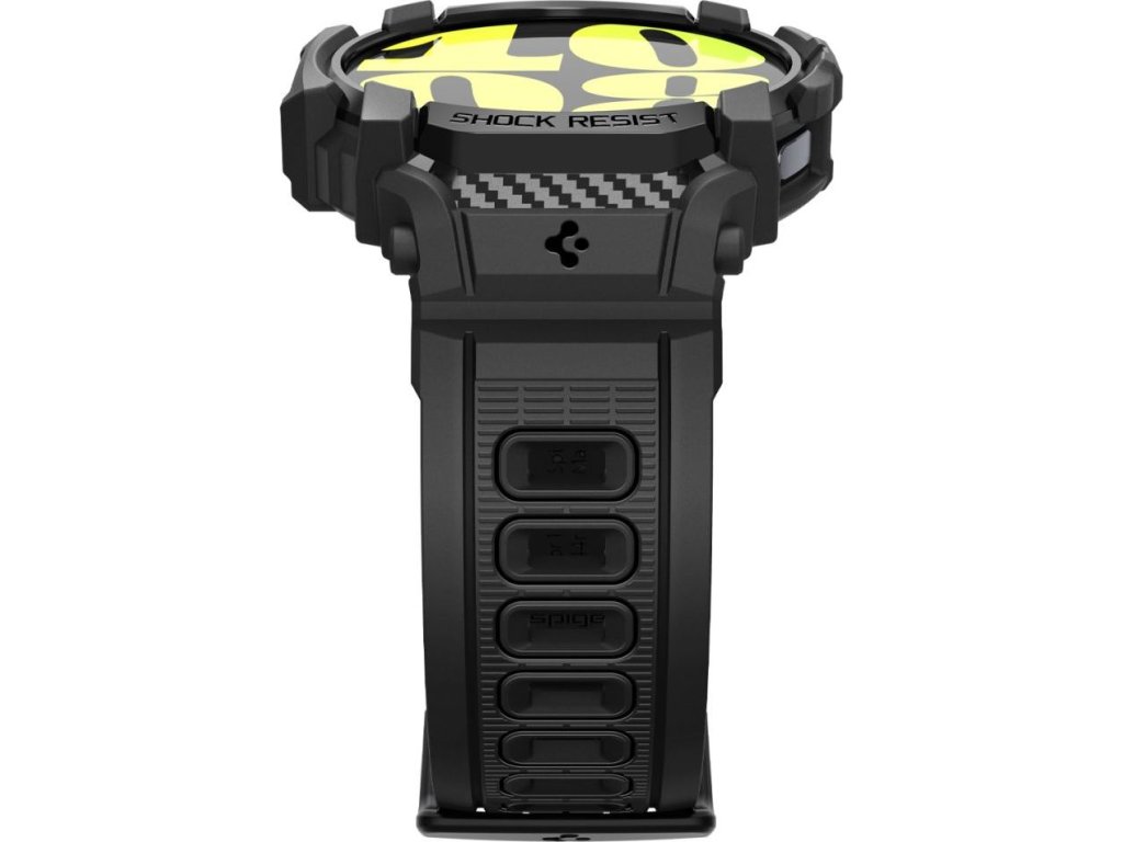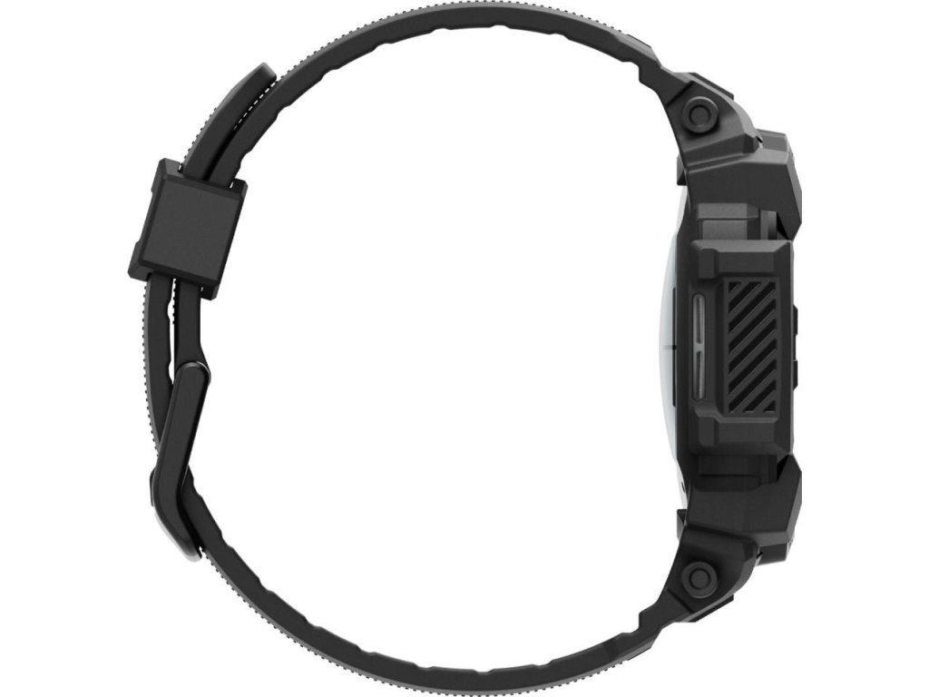 Pohodlný a sportovní pásek Spigen Rugged Armor "Pro". Vyrobeno z pružného TPU materiálu zdobeného akcenty z uhlíkových vláken. Mají integrované pouzdro se zvýrazněnými okraji, které chrání pouzdro hodinek před poškrábáním a nárazy.