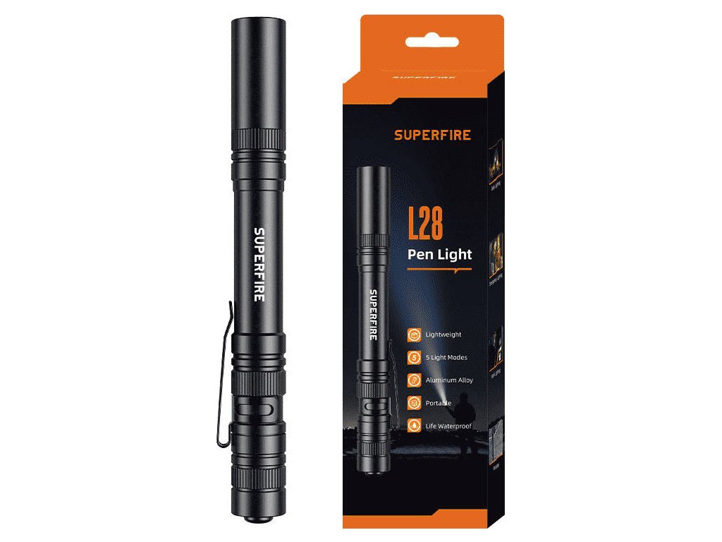 Pokud hledáte malou svítilnu, kterou si můžete vzít téměř kamkoli s sebou, model L28 bude vynikající volbou. Přístroj je menší než propiska - snadno jej uložíte do tašky nebo dokonce do kapsy. Je také vybavena speciálním klipem, takže ji můžete připevnit na batoh nebo košili.