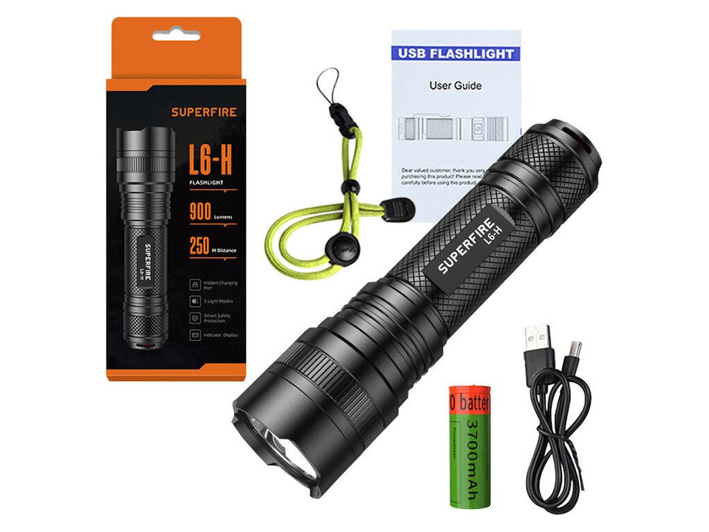Svítilna Superfire L6-H – 750 lm, 15W, USB-C, 5 režimů