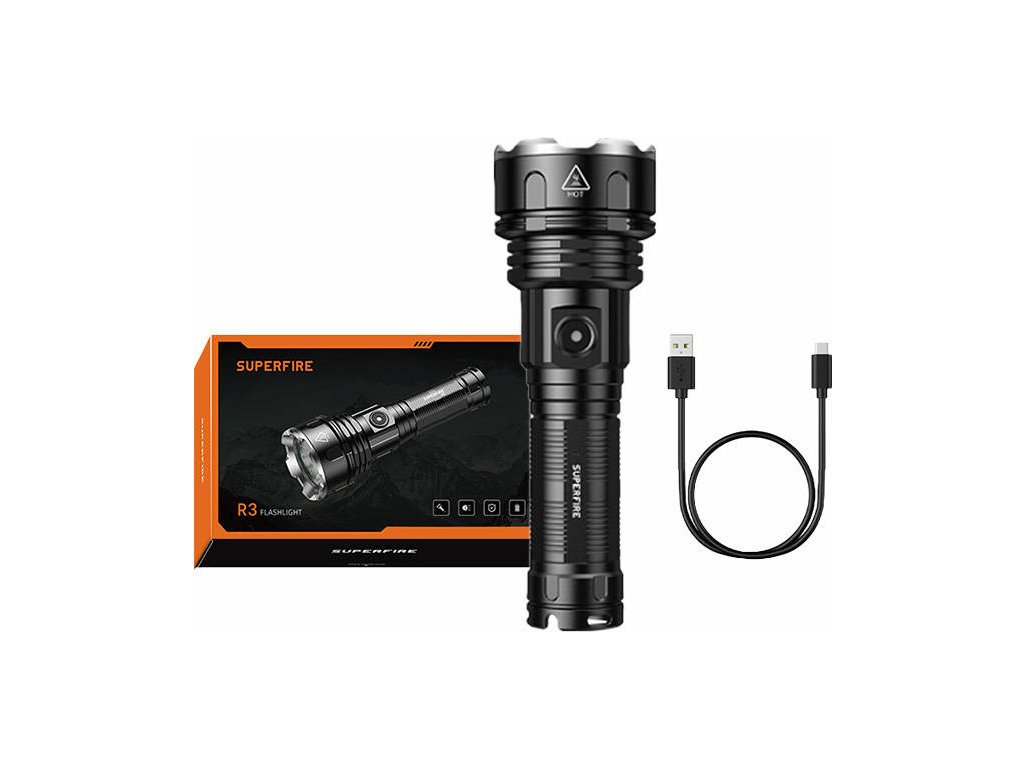 Svítilna Superfire R3 P90 – 2000 lm, USB, 36 W, 5 režimů, 350 m