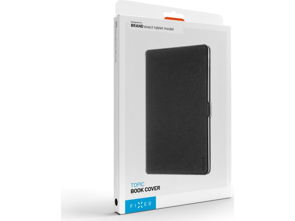 Elegantní, tenké a praktické pouzdro typu kniha FIXED Topic, navržené přímo pro váš tablet. Pouzdro je vyrobeno z kvalitní a odolné PU kůže obšité po okrajích, která zaručí dostatečnou ochranu tabletu před poškozením. Materiál je příjemný na dotek a vyniká vysokou odolností. Odklápěcí přední část pouzdra kryje displej tabletu a je jištěna zavíráním na magnet. Na vnitřní straně odklápěcí části nejdete praktickou kapsu na kreditní kartu. Transparentní TPU kryt uvnitř pouzdra je vyroben přesně na míru danému zařízení. Všechna ovládací tlačítka zůstanou plně přístupná, stejně tak i nabíjecí konektor a reproduktory. Gelový materiál krytu navíc usnadní vložení i vyjmutí tabletu. Díky důmyslné konstrukci jde pouzdro nastavit do praktické pozice stojánku, kterou oceníte zejména při sledování filmů nebo videohovoru. S pouzdrem FIXED Topic získáte dostatečnou ochranu pro váš tablet v elegantním a stylovém provedení.