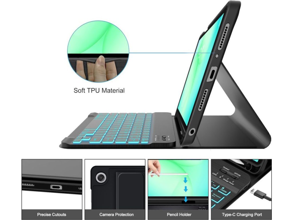 Precizně vyrobené výřezy pro kameru, porty a reproduktory zajišťují snadné použití a vysokou funkčnost. Pouzdro je vybaveno speciálním držákem stylusu, který umožňuje bezpečné používání bez rizika ztráty.