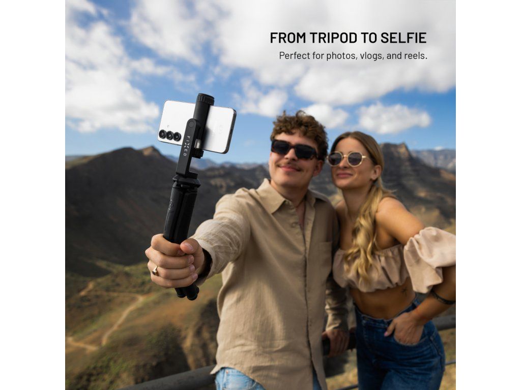 MagSafe tripod a selfie tyč 2v1 s bezdrátovým ovládáním. Kompaktní řešení pro focení i natáčení – stabilní tripod a výsuvná selfie tyč s maximální délkou až 105 cm. V balení je i univerzální držák pro uchycení všech telefonů bez MagSafe.