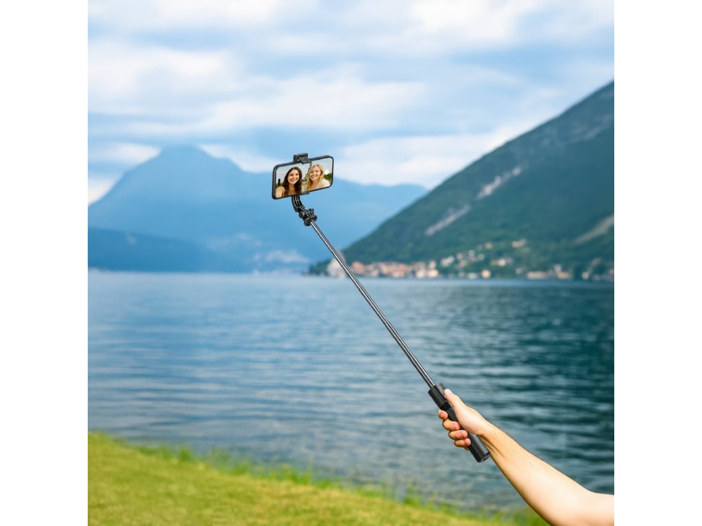 - Teleskopické provedení: Výsuvná konstrukce zajišťuje dostatečný odstup a široký úhel záběru pro všechna vaše selfie.