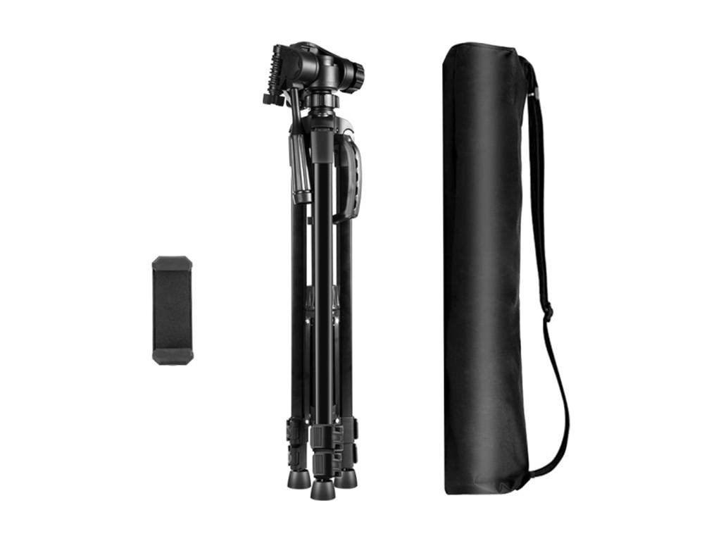 Stativ je vyroben z hliníkové slitiny, je mimořádně lehký a kompaktní, takže se bude skvěle hodit na cesty a nebude těžkou přítěží při výletech. Součástí sady je brašna, která usnadní přepravu. Jeho konstrukce je pevná a robustní díky 3 sekcím hliníkových nohou s rychloupínacími uzávěry a protiskluzovými gumovými nožkami - zajistí, že vaše snímky budou ostré a jasné bez ohledu na podmínky. Pro ještě větší stabilitu použijte háček s pružinou k zavěšení těžkých předmětů (až 3 kg) a zajistěte si tak ještě větší bezpečí.