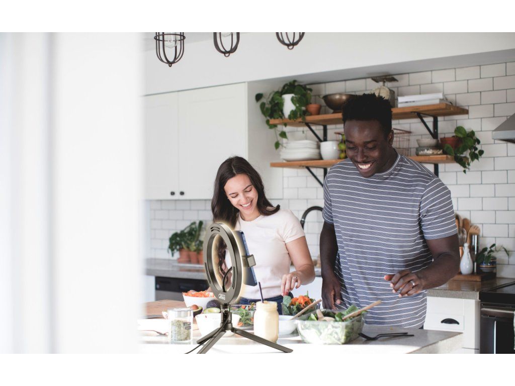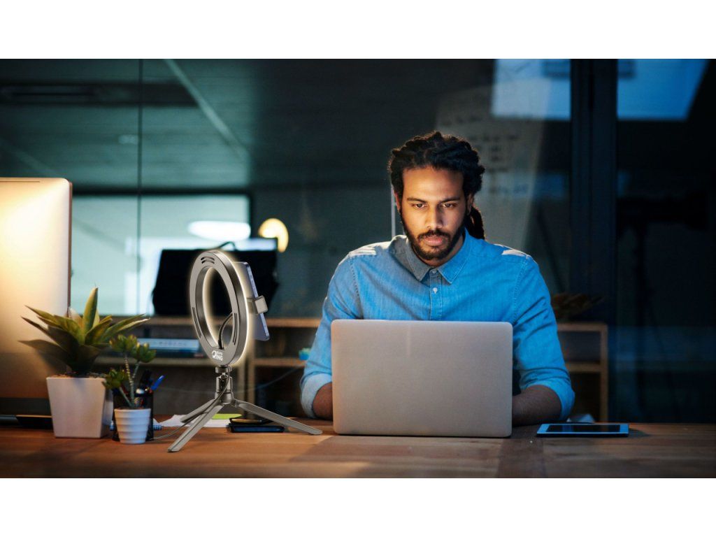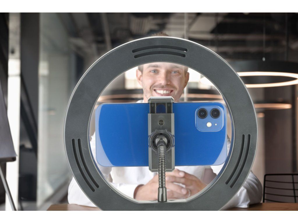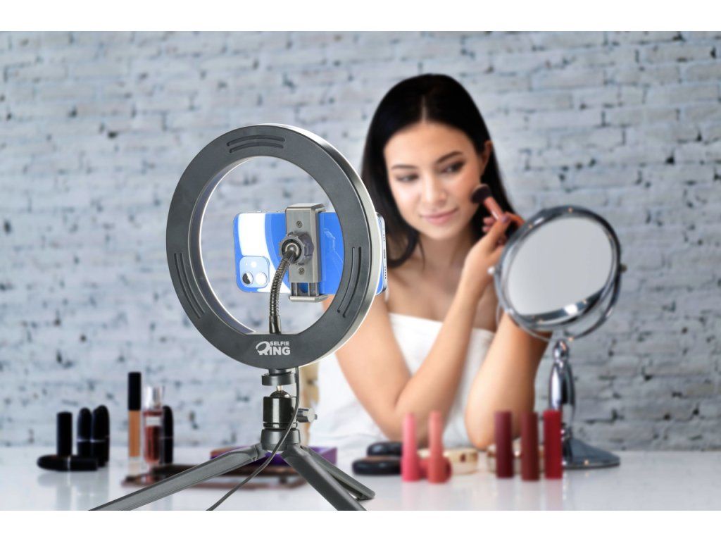Díky kruhovému osvětlení docílíte ideálního osvětlení a spolu s vaším telefonem tak vytvoříte z kteréhokoliv místa malé natáčecí studio.