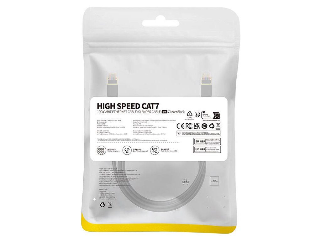 Vysokorychlostní síťový kabel Baseus, Ethernet RJ45, Gigabit, Cat.7, 1m (černý)