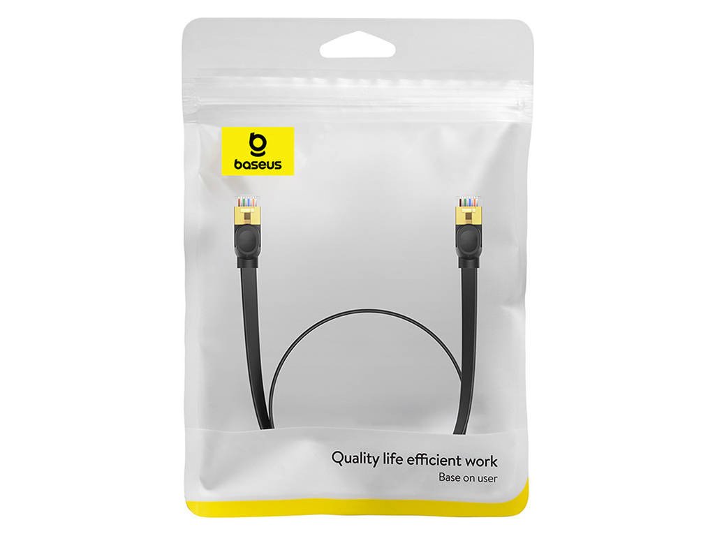 Baseus Ethernetový RJ45 plochý sieťový kábel, gigabitový, Cat.7, 0,5 m (čierny)