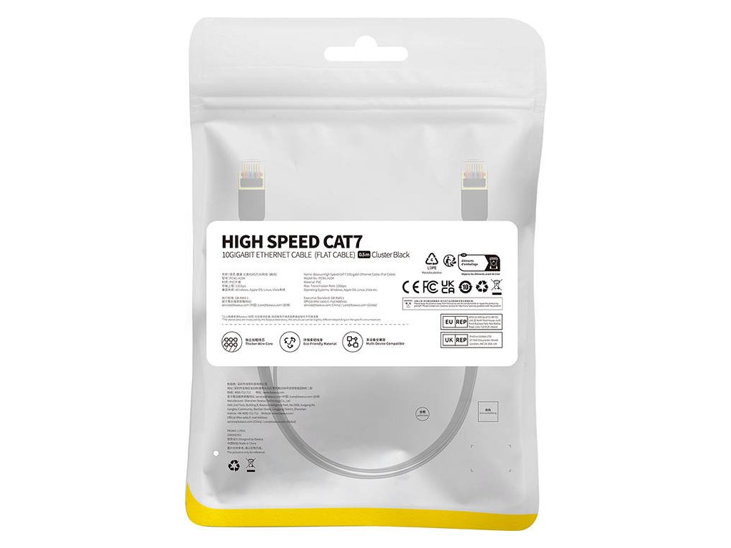 Baseus Cat 7 UTP Ethernetový kábel RJ45 plochý 0,5 m čierny