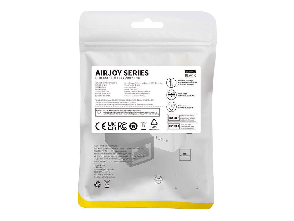 Užívejte si rychlé a stabilní připojení k síti kdekoli u vás doma! Konektor Baseus AirJoy vám umožní prodloužit váš příliš krátký síťový kabel. Poskytuje propustnost s rychlostí až 1000 MB/s. Díky promyšlené konstrukci se nemusíte obávat rušení, zpoždění ani jiných problémů s připojením. Vyniká širokou kompatibilitou, takže jej můžete používat s celou řadou zařízení, včetně televizoru, směrovače, HUBu nebo počítače.