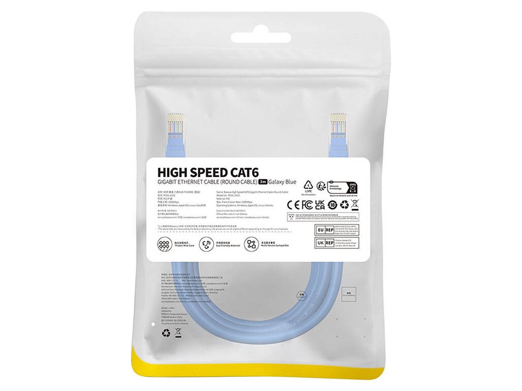Síťový kabel Baseus Ethernet poskytuje rychlé a stabilní připojení bez rušení, takže můžete pohodlně pracovat a hrát hry. Navíc přenosová rychlost dosahuje 1000 Mb/s, takže můžete přenášet soubory během okamžiku. Kompatibilita s různými systémy zase umožňuje připojit kabel k mnoha zařízením.