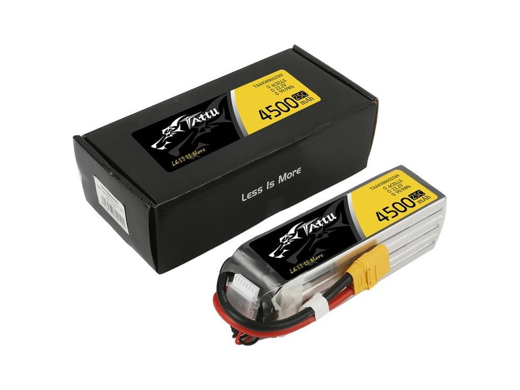 Batéria Tattu 4500mAh 22,2V 25C 6S1P XT90 Vyznačujú sa vysokou odolnosťou a vynikajúcim výkonom, takže splnia požiadavky aj tých najnáruživejších RC modelárov.