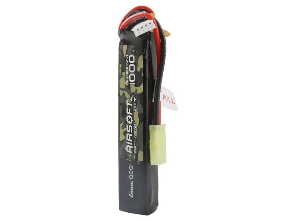 Lipo batéria Gens ace 25C 1000mAh 3S1P 11,1 V Airsoft Gun s mini konektorom Tamiya je určená na napájanie repliky airsoftovej zbrane. Je ideálny na použitie v nárazníkoch a replikách AEG, kde je priestor pre batériu obmedzený bez toho, aby došlo k obetovaniu výkonu. Ponúka nepretržité vybíjanie 25C, čím poskytuje dostatočný výkon pre vašu Airsoftovú zbraň. S kapacitou 1000 mAh a napätím 11,1 V poskytuje dostatok energie na udržanie výkonu počas dlhých hier.
