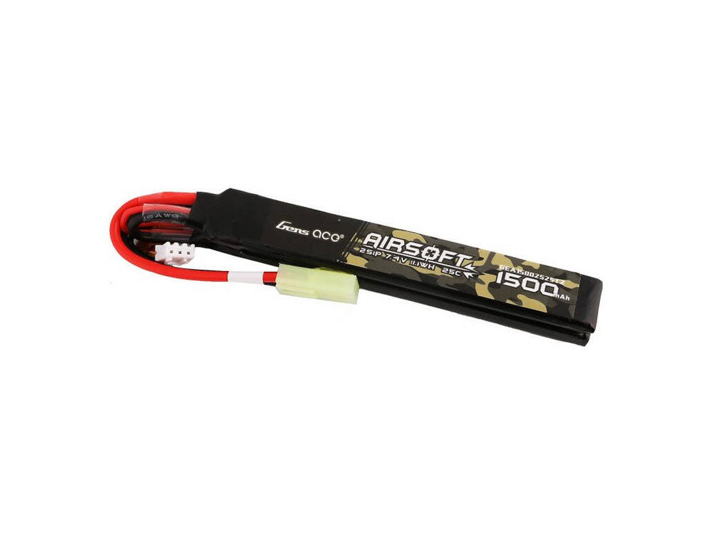 Gens ace 25C 1500mAh 2S1P 7.4V Nunchuck 2X Airsoft Gun Lipo batéria s mini Tamiya konektorom