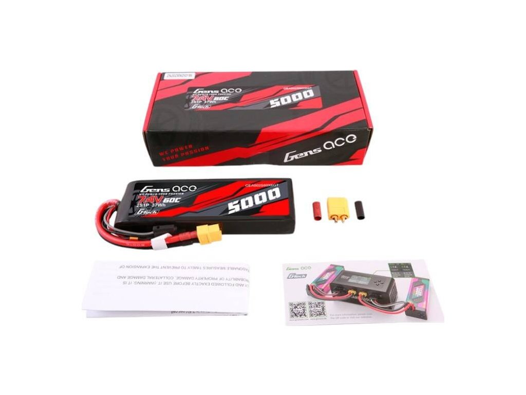 Gens ace G-Tech je najmodernejšie riešenie na zabezpečenie efektívneho napájania RC modelov. Pomocou pokročilej technológie stohovania dosahuje kapacita jedného článku 5000mAh, čo zaručuje dlhodobé používanie s vysokou energiou. Vďaka vybíjaciemu výkonu až 60C v nepretržitom režime je batéria ideálnou voľbou pre RC modely áut v mierke 1/8 alebo 1/10, ako sú Traxxas Slash4X4 a Team XRAY High-tech Luxury. Výrobok má tiež puzdro z PC materiálu, ktoré ďalej prispieva k jeho odolnosti a bezpečnému používaniu. Má certifikát ROAR, čo potvrdzuje jeho vysokú kvalitu a súlad s priemyselnými normami.
