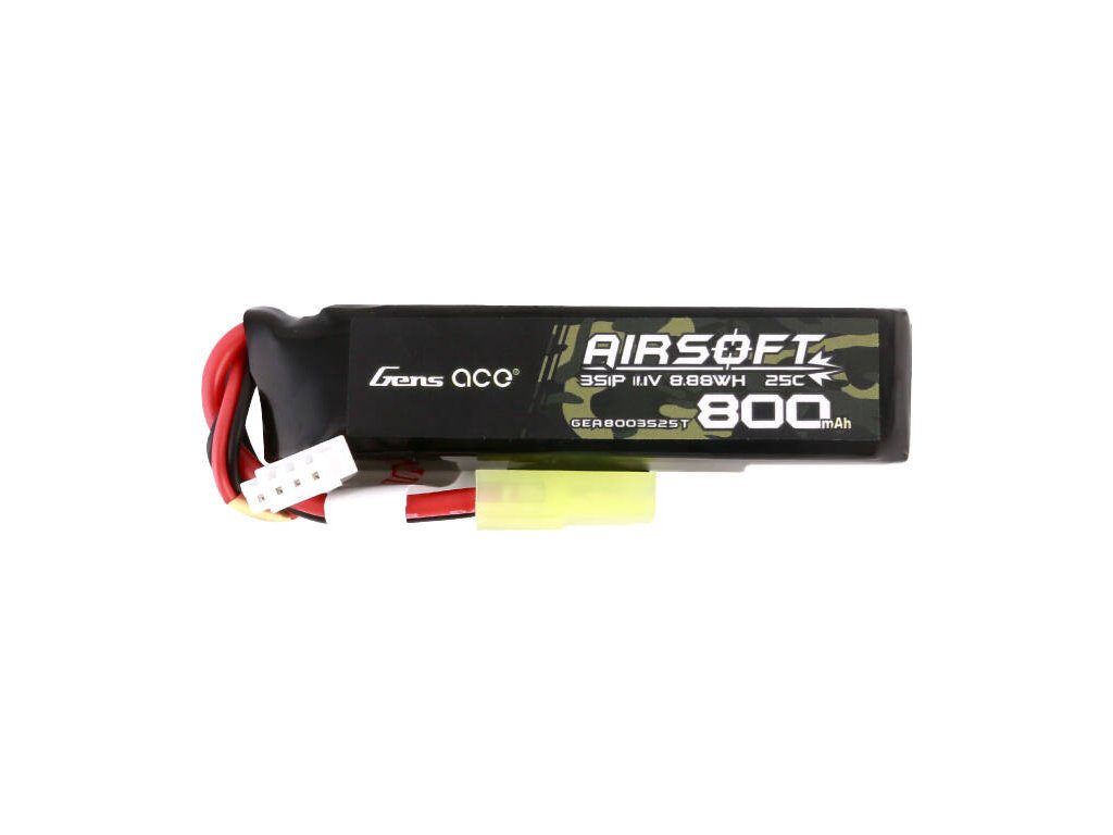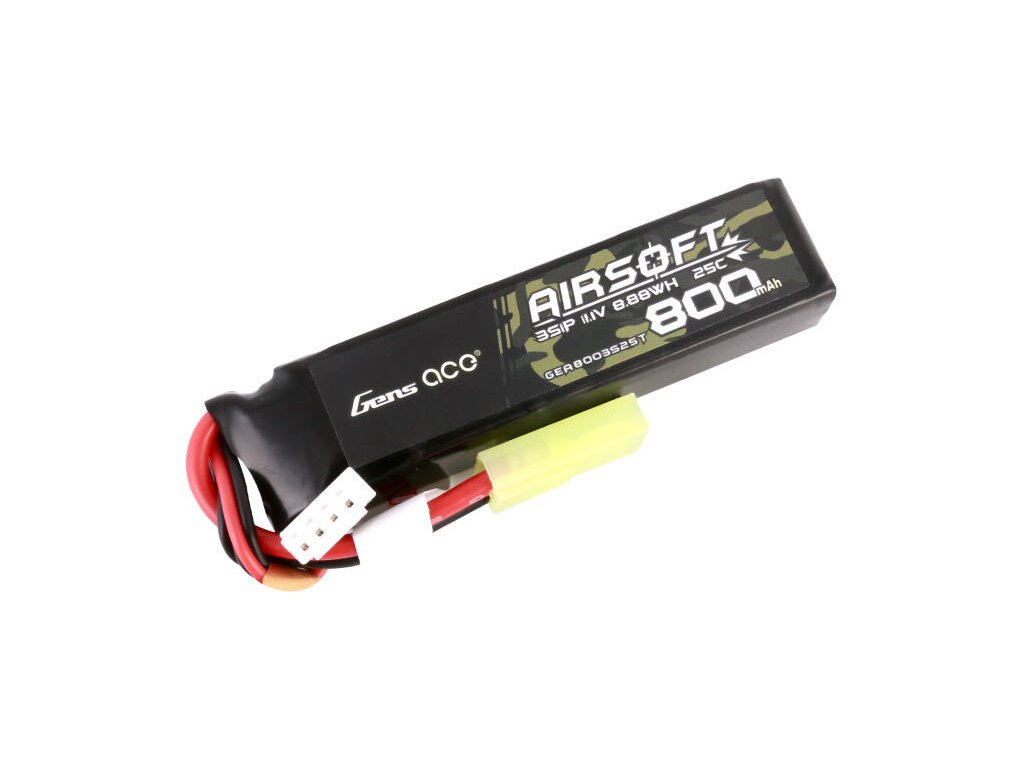 Gens Ace Lipo 800MAH 11.1V 25C 3S1P Airsoft Gun Lipo batéria s mini Tamiya konektorom