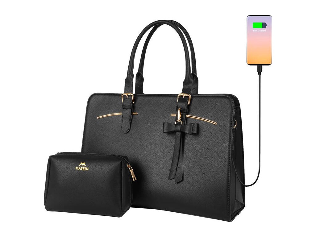 Dámska taška na 15,6'' notebook s kozmetickou taškou Matein 1310 USB Black