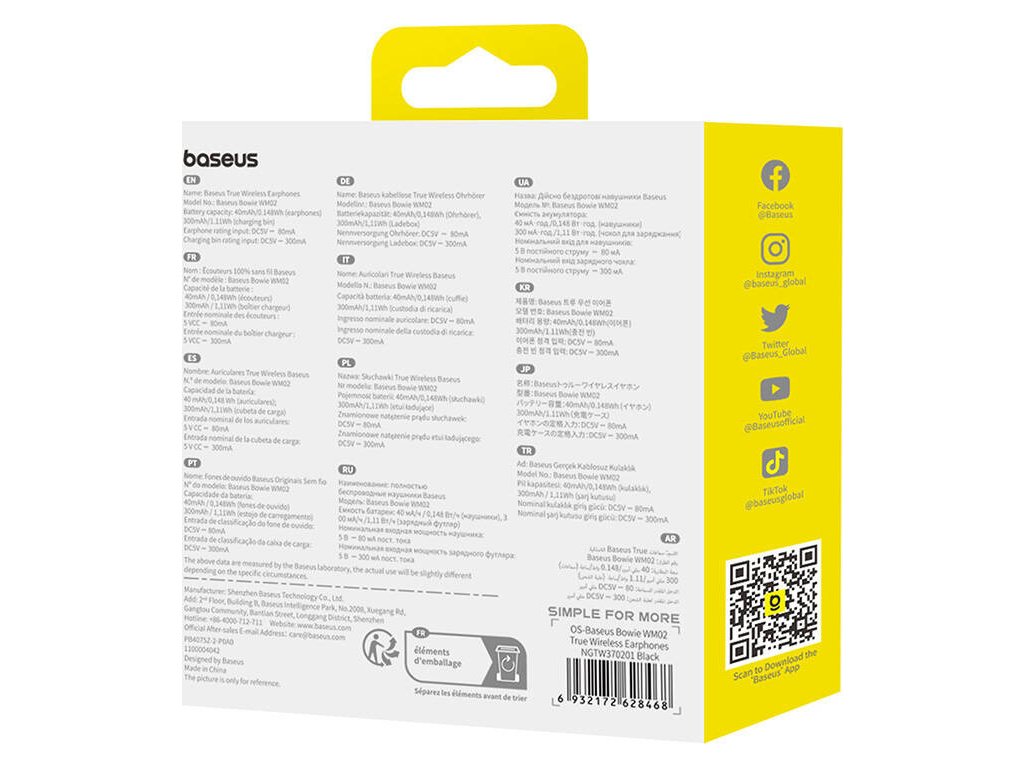 Ergonomický dizajn, originálny dizajn, stabilné bezdrôtové pripojenie a dlhá pracovná doba sú hlavné prednosti slúchadiel TWS Baseus Bowie WM02 OS. Ľahké a šikovné, nie je problém ich prenášať a výkonná batéria poskytuje až 25 hodín prevádzky. Bluetooth 5.3 zaručuje spoľahlivé pripojenie, zatiaľ čo priehľadné prvky puzdra dodávajú elegantný nádych. Výhodou je aj nízka latencia 60 ms a pohodlné dotykové ovládanie.
