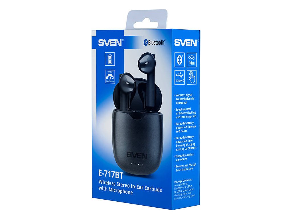 Bezdrôtové slúchadlá do uší s mikrofónom SVEN E-717BT (čierna)