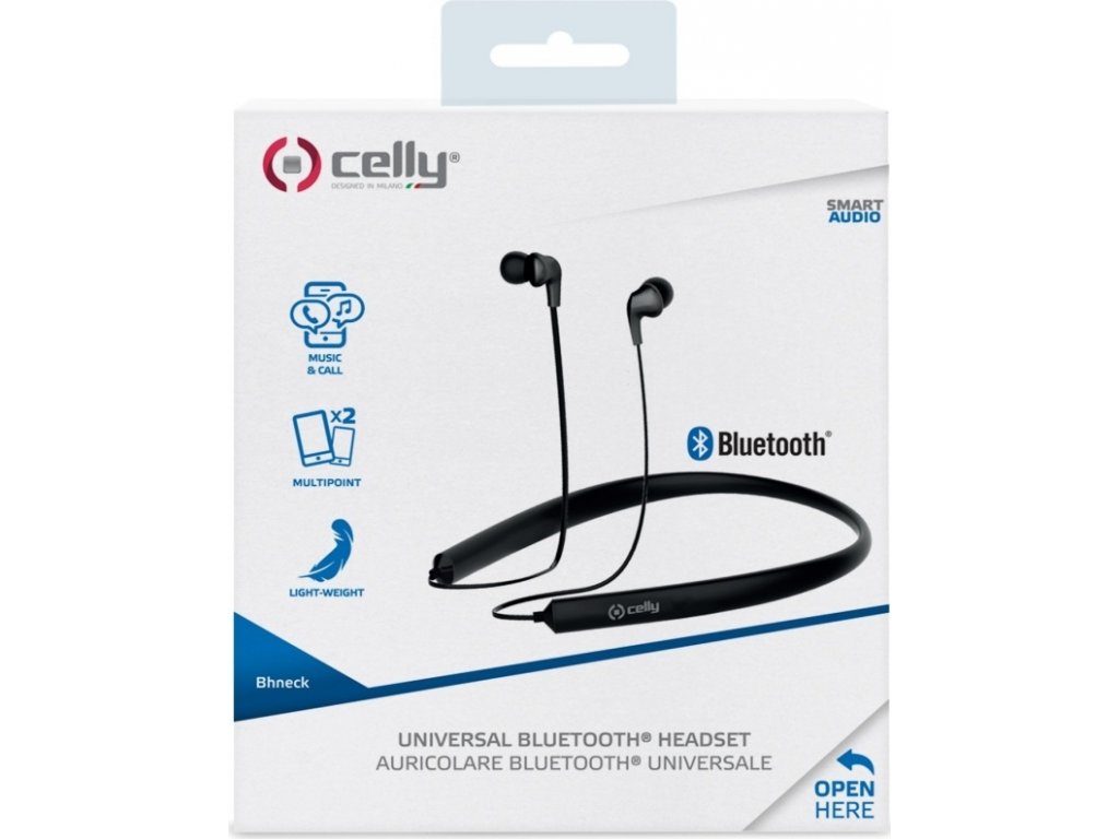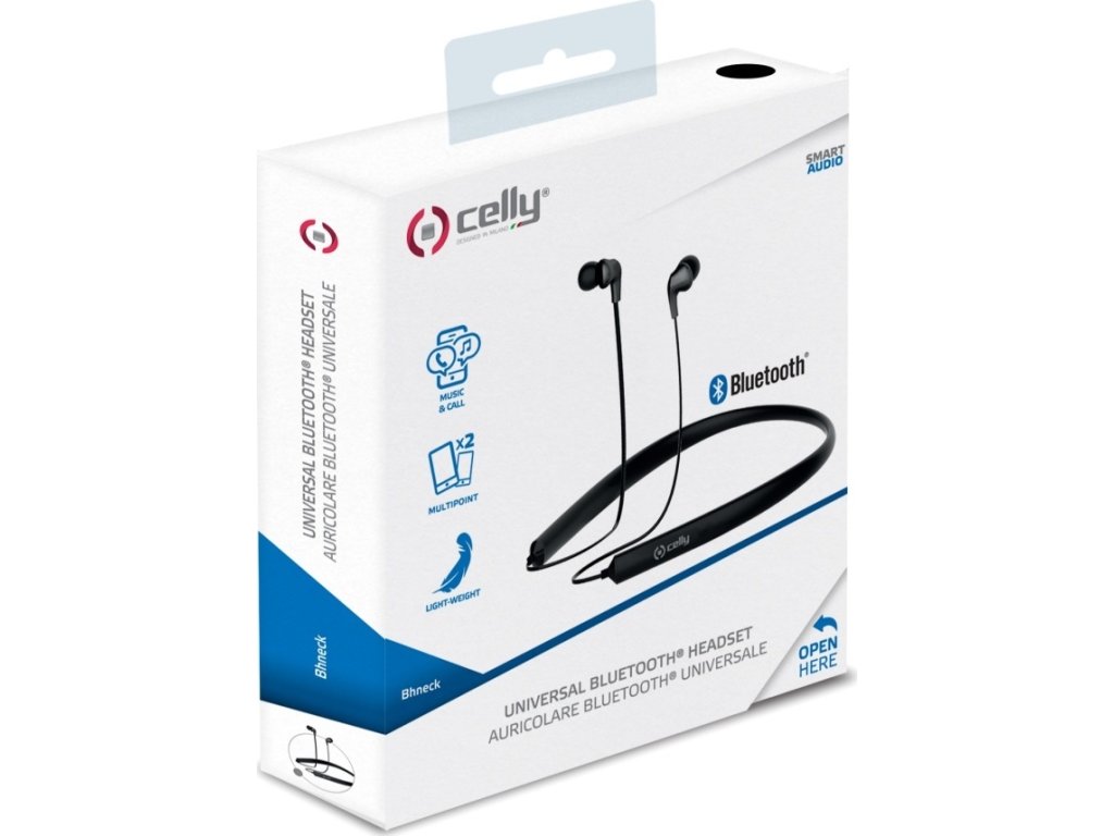 Bluetooth stereo slúchadlá CELLY BH Neck vynikajú extrémnou výdržou batérie, ergonomickým tvarom a skvelým zvukom. Na jedno nabitie zvládnu bez problémov celodenné počúvanie. Vďaka ergonomickému tvaru slúchadiel perfektne drží v ušiach, na výber máte tri rôzne veľkosti špuntových nástavcov. Dajú sa pohodlne nosiť okolo krku a nehrozí tak ich strata. Kvalitný a čistý zvuk ocenia všetci priaznivci hudby, pre pohodlný zážitok z počúvania môžete ovládať hudbu a hlasitosť pomocou ovládača. Slúchadlá majú integrovaný mikrofón s tlačidlom pre príjem hovoru.