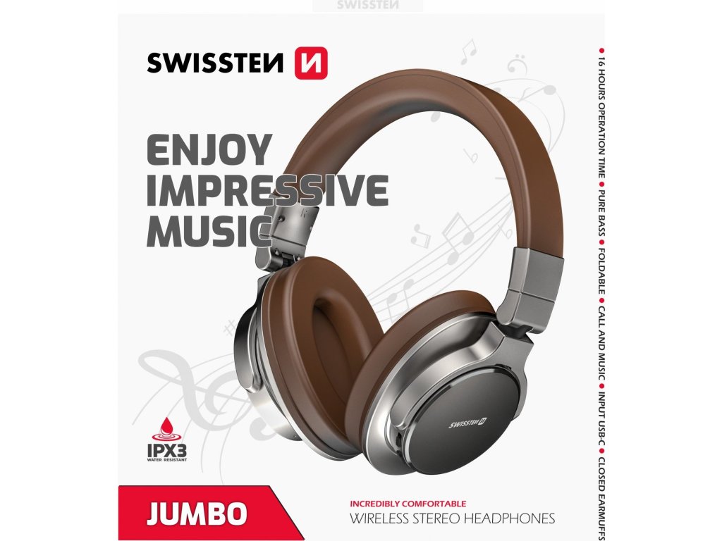 BLUETOOTH STEREO Slúchadlá SWISSTEN JUMBO STRIEBORNÉ/HNEDÁ