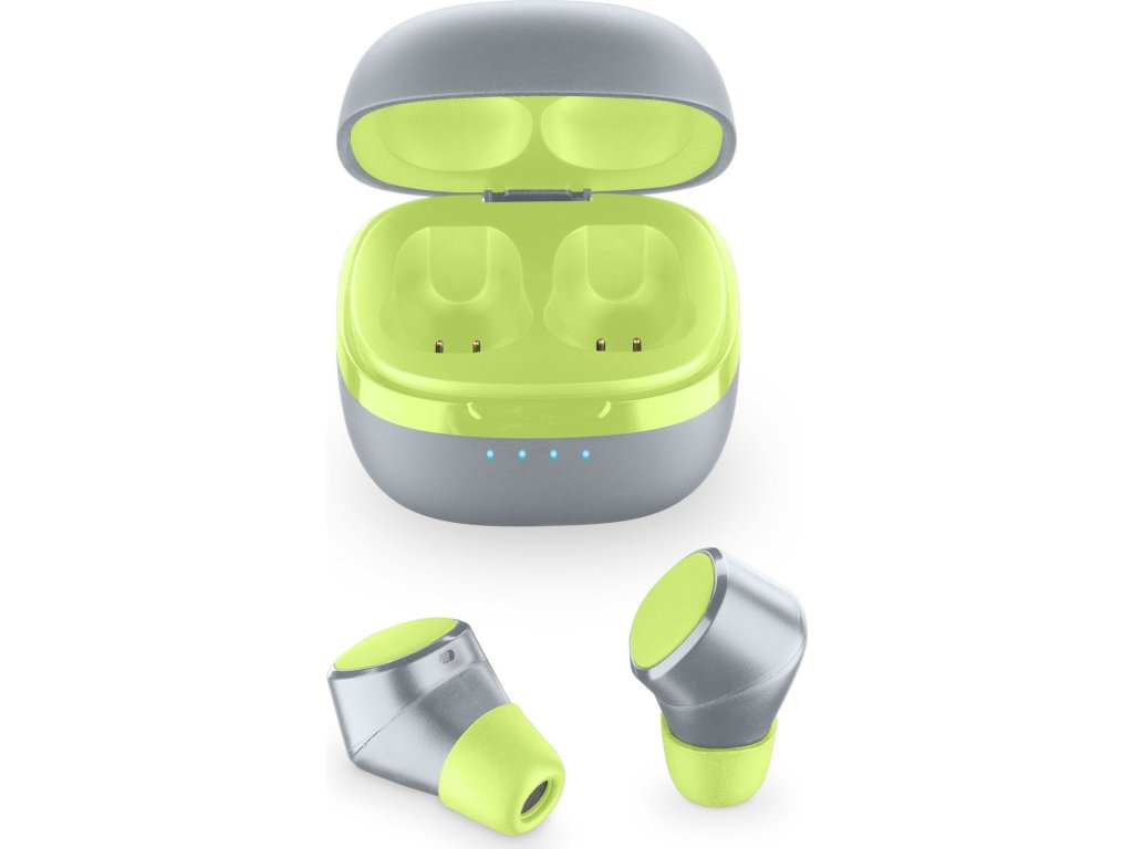 True Wireless slúchadlá Cellularline Evade s dobíjacím puzdrom, limetkové