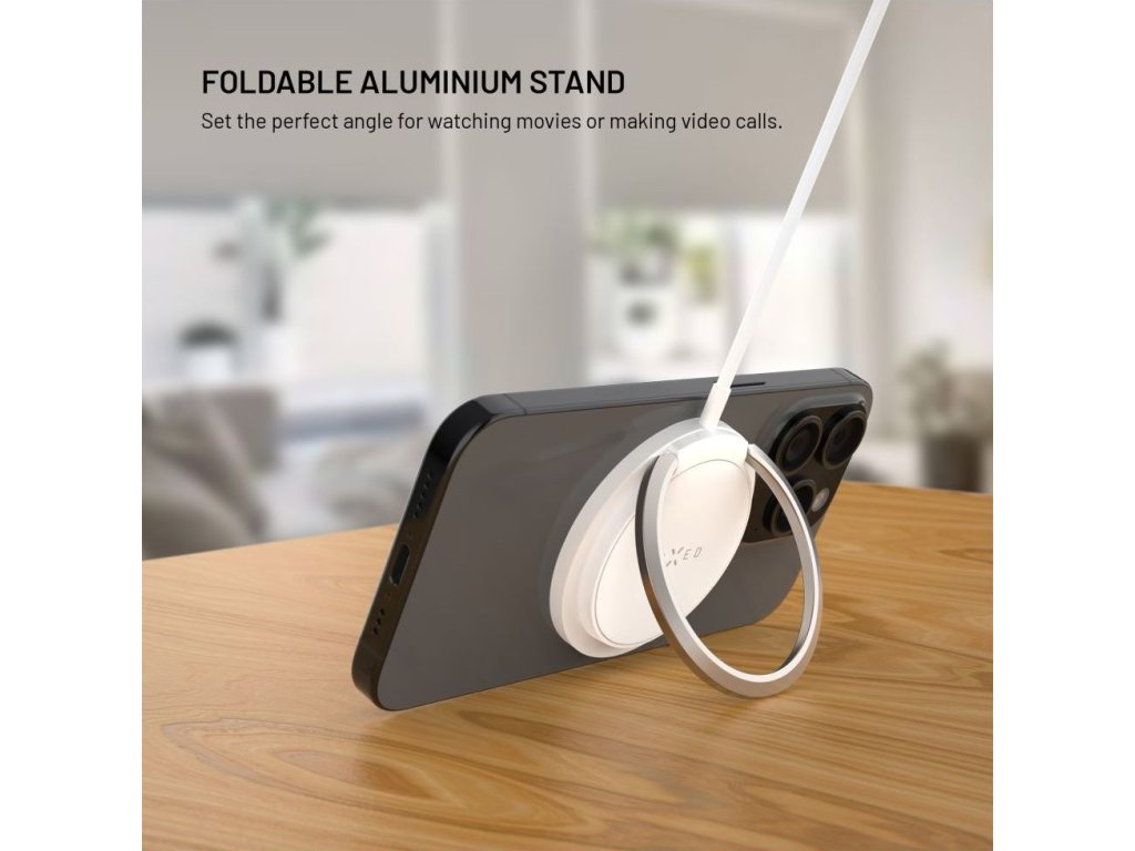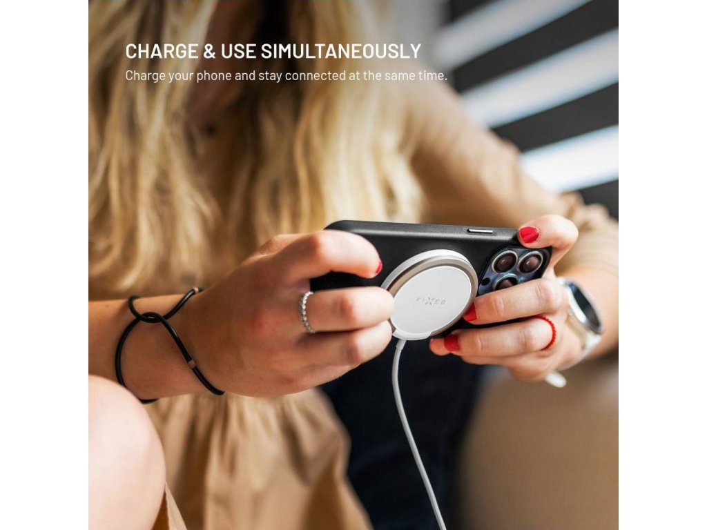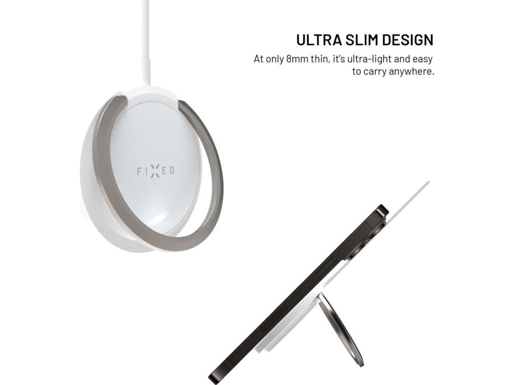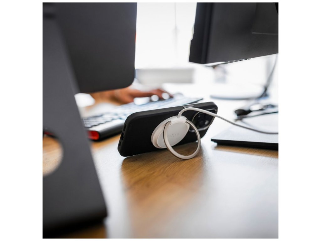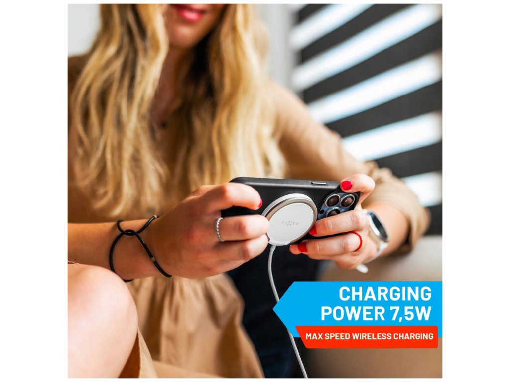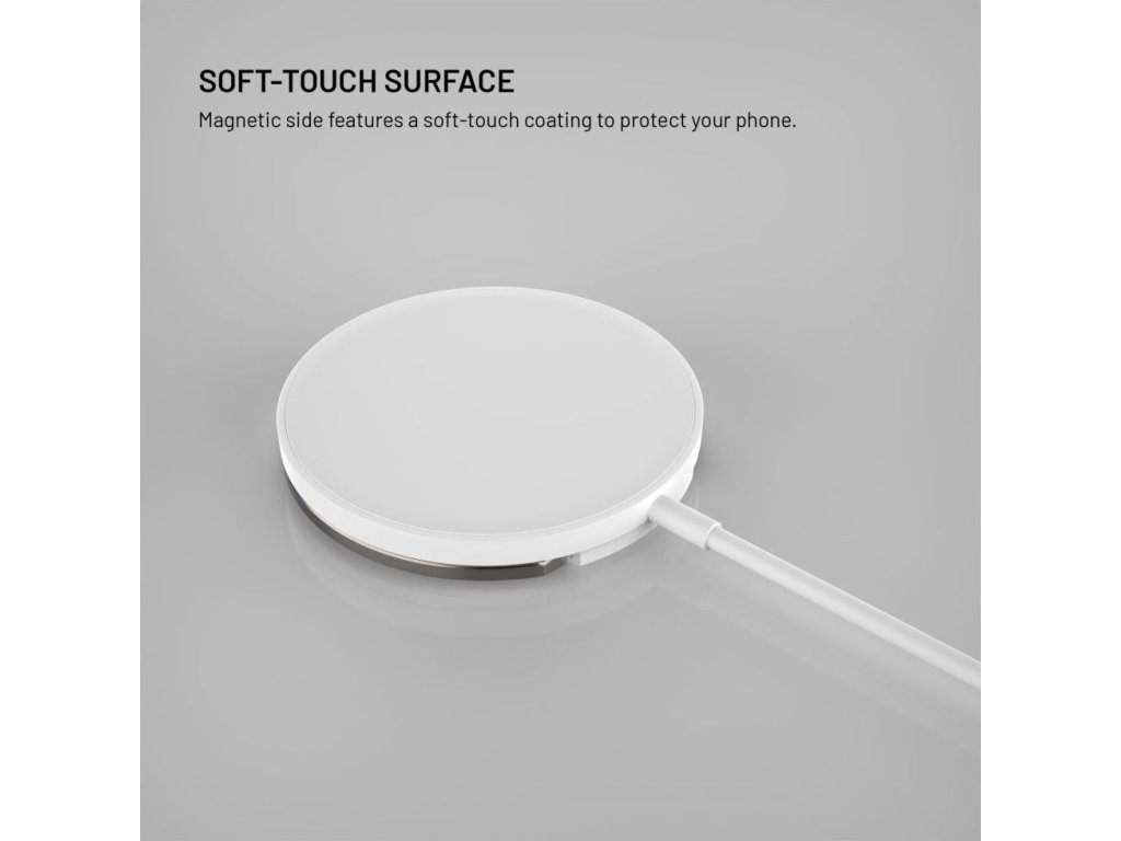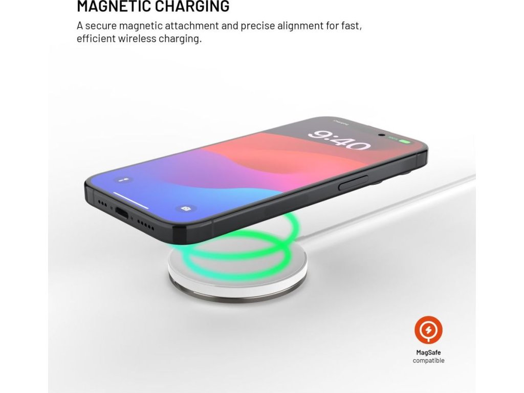 Vylepšená verzia obľúbenej bezdrôtovej nabíjačky v novom dizajne s kovovým vyklápacím stojanom je navrhnutá priamo pre iPhone 12 a vyššie s podporou funkcie MagSafe. Integrované magnety bezpečne uchytia nabíjačku k telu telefónu a uľahčia manipuláciu pri nabíjaní. Vďaka technológii Qi je možné nabíjať aj smartfóny iných značiek s výkonom až 15W (7,5W pre iPhone). Nabíjanie sa spustí okamžite po priložení nabíjačky k chrbtu telefónu, pred poškriabaním ich chráni jemný silikónový povrch nabíjačky. Pripojený kábel s dĺžkou 1,2 m je ukončený USB-C konektorom pre pripojenie do nabíjacieho adaptéra. Vďaka stojanu z odolnej brúsenej zliatiny si môžete počas nabíjania telefón postaviť do horizontálnej alebo vertikálnej polohy. Tenké telo nabíjačky dokonale splynie s chrbtom telefónu.
