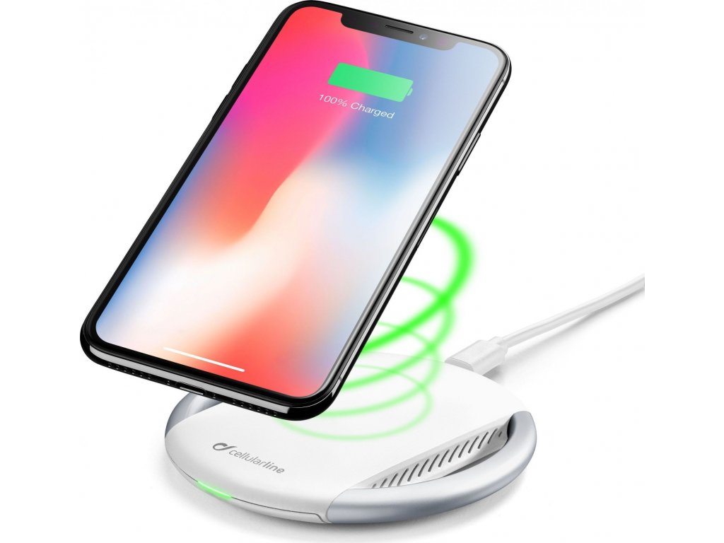 Bezdrôtová nabíjačka Cellularline Wireless Fast Charger Pad 10W + nabíjací adaptér, Qi štandard, biela