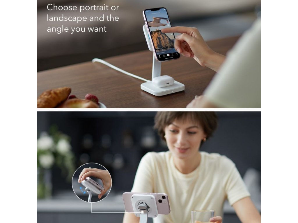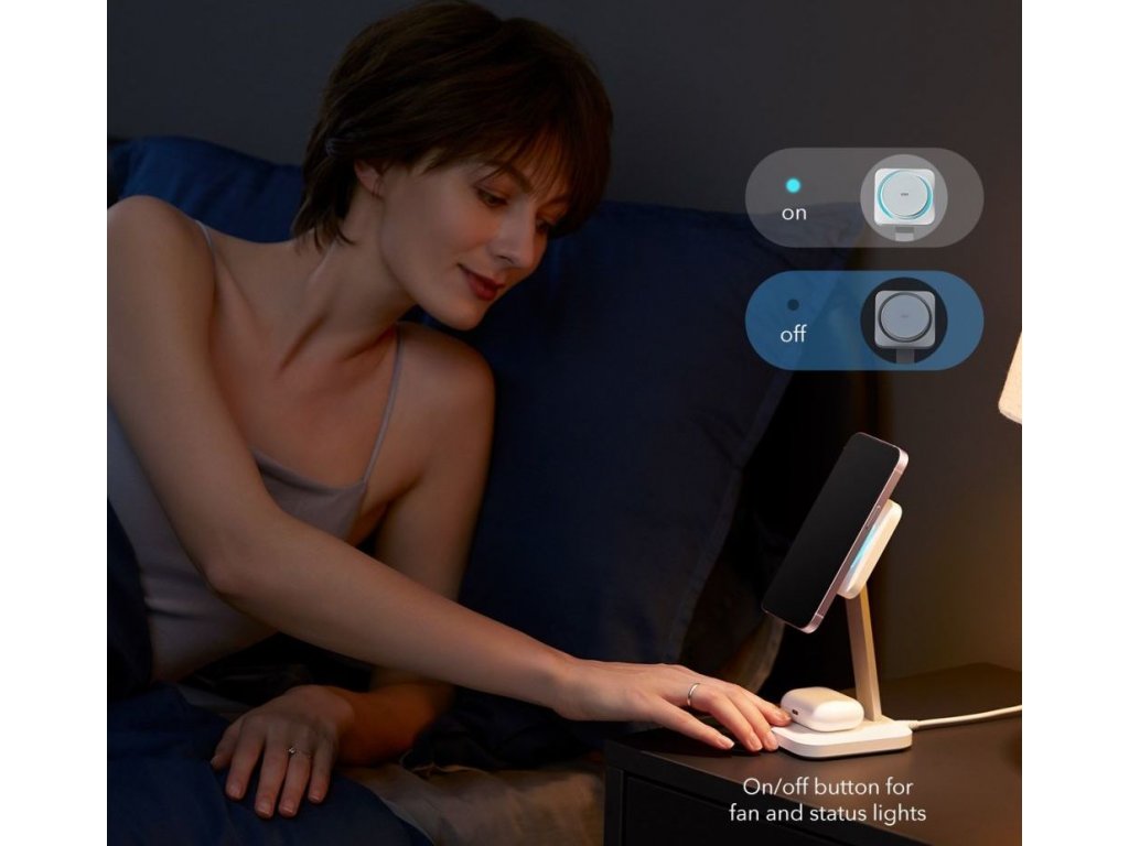 Halolock CryoBoost 2v1 stojanček od ESR je skvelým riešením pre rýchle a bezpečné nabíjanie Apple zariadení, ako je iPhone alebo Airpods pomocou technológie Magsafe.