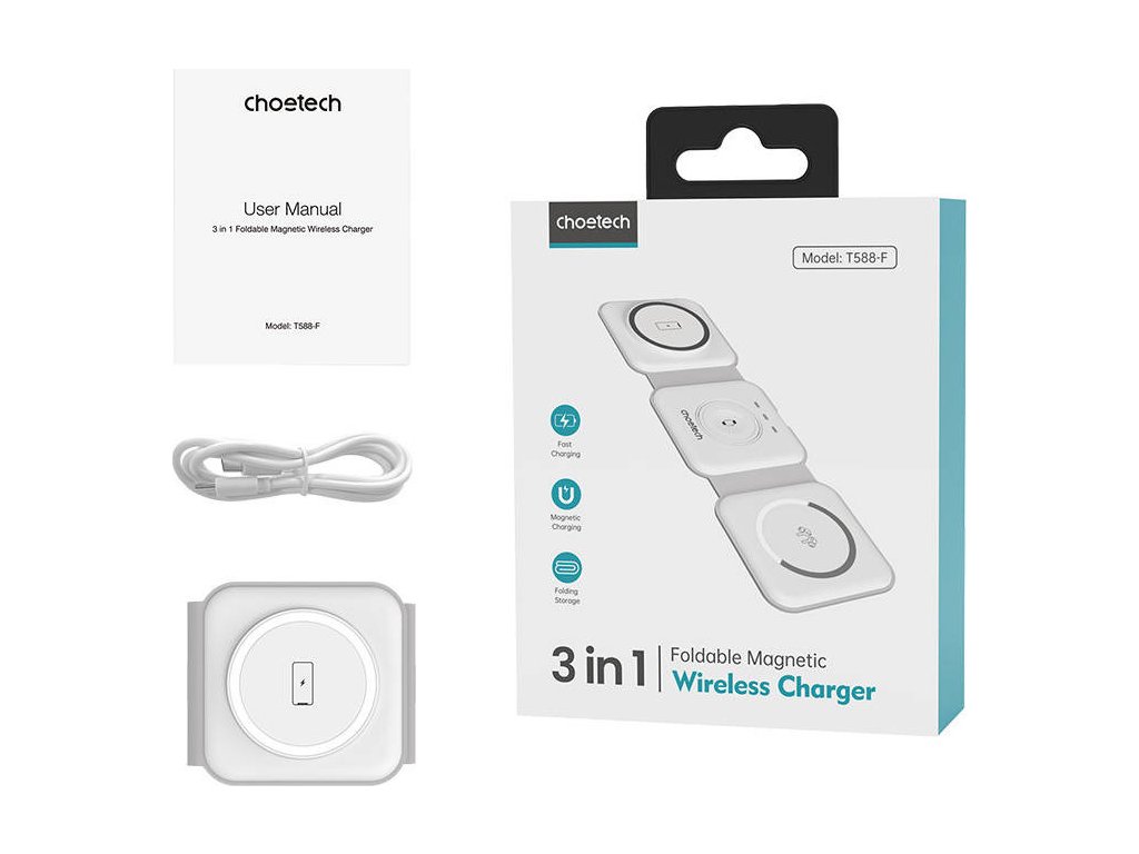 Choetech T588-F 3v1 Magnetická bezdrôtová nabíjačka 15W (biela)